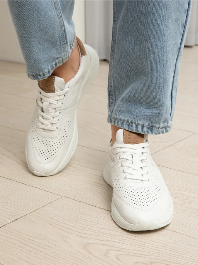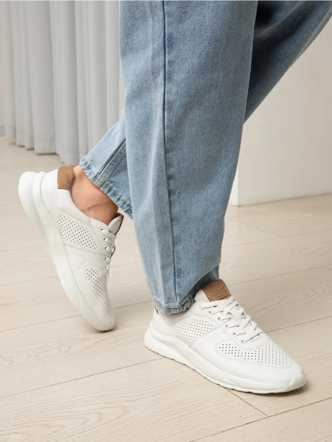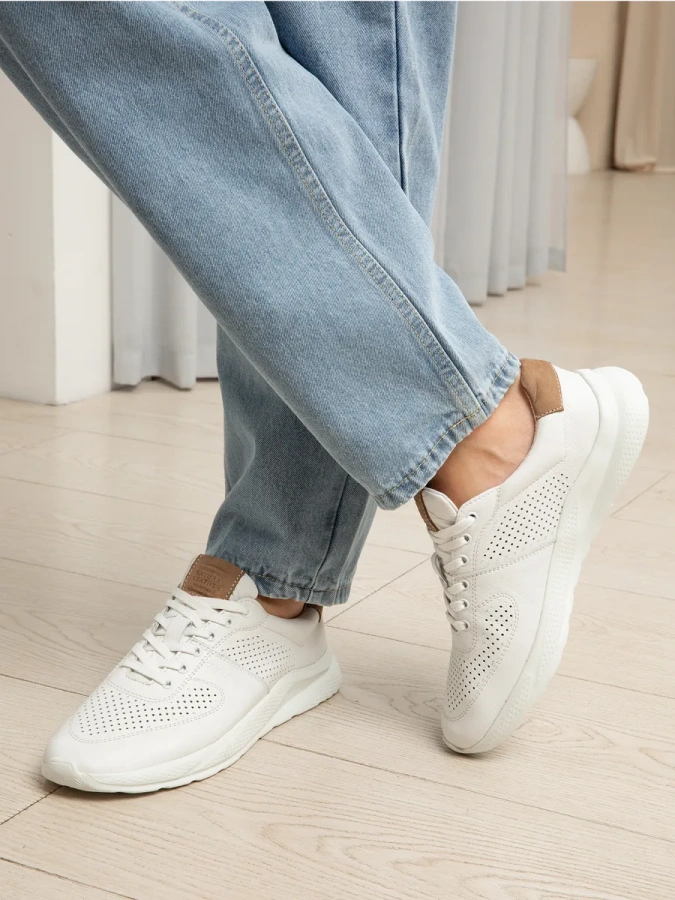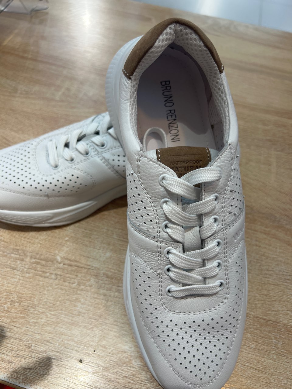 Изготовленные из 100% натуральной кожи, они отличаются высоким качеством и комфортом. Белые кроссовки BRUNO RENZONI станут отличным дополнением к вашему гардеробу и подойдут для любого сезона. Удобная шнуровка обеспечивает надёжную фиксацию стопы, а подошва из ТЭП гарантирует хорошую амортизацию и долговечность. Натуральная кожаная стелька и подкладка обеспечивают комфорт при носке. Высота подошвы — 2 см, высота каблука — 3,5 см. Эти кроссовки — отличный выбор для активного образа жизни.