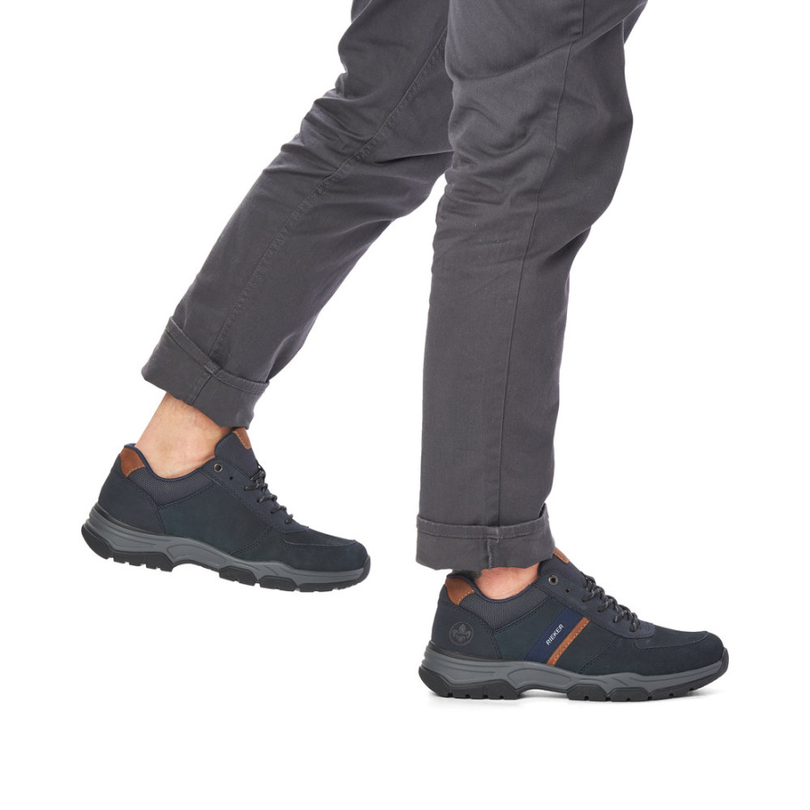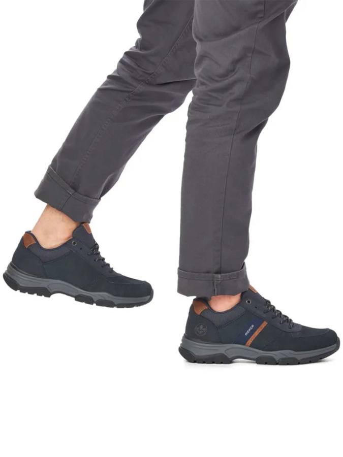 Мужские кроссовки RIEKER синего цвета — отличный выбор для осени. Выполнены из 100% натуральной кожи (замши), что обеспечивает долговечность и комфорт. Текстильная подкладка и стелька создают уютную атмосферу внутри обуви. Полиуретановая подошва обеспечивает удобство и лёгкость при ходьбе. Шнуровка позволяет регулировать посадку обуви по своему усмотрению. Эти кроссовки станут отличным дополнением к гардеробу.