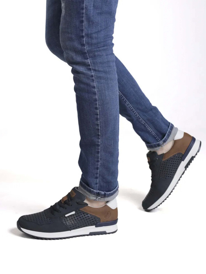 Мужские кроссовки из 100% натуральной кожи от бренда Rieker. Главная отличительная черта обуви этого бренда - непревзойденное удобство и комфорт. Идеально подойдут на теплую весну и лето благодаря сквозной перфорации. Подкладка устойчива к износу и хорошо вентилируются. Мягкая стелька придает дополнительный комфорт стопе. Гибкая подошва обладает износостойкостью, повышенной амортизацией и хорошим сцеплением с поверхностью. Удобная широкая колодка обуви адаптирована под мужскую стопу и длительную носку, а наличие шнуровки позволяет регулировать подъем. Подходят на стандартную полноту стопы и выше.