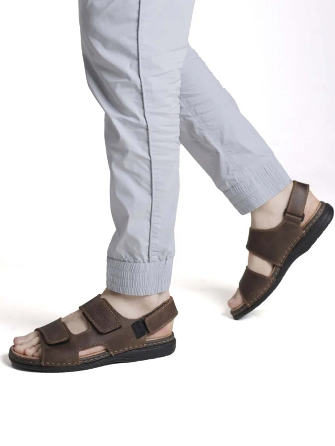 Мужские сандалии из натуральной кожи от бренда Rieker. Главная отличительная черта обуви этого бренда - непревзойденное удобство и комфорт. Мягкая стелька из натуральной кожи с «эффектом памяти» Antistress индивидуально подстраивается под форму стопы, снимает чувство усталости и разгружает суставы, поддерживает и амортизирует стопу. Подошва обладает повышенной амортизацией и хорошим сцеплением с поверхностью. Удобная колодка адаптирована под мужскую стопу и длительную носку, а застежки на липучках позволяют регулировать объем и плотно фиксирует ногу. Подходят на стандартную полноту стопы и выше.