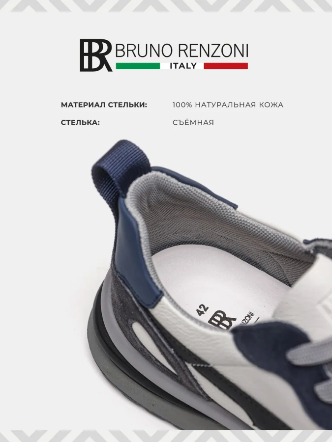 Кроссовки имеют текстильную подкладку, смотрятся очень стильно и гармонично закончат любой образ. Также оснащены съемной стелькой, выполненной из натуральной кожи, что придаёт максимальный комфорт. Преимуществом является тот факт, что съемная стелька более удобна в уходе, а также может быть заменена на стельку, изготовленную по индивидуальному заказу.