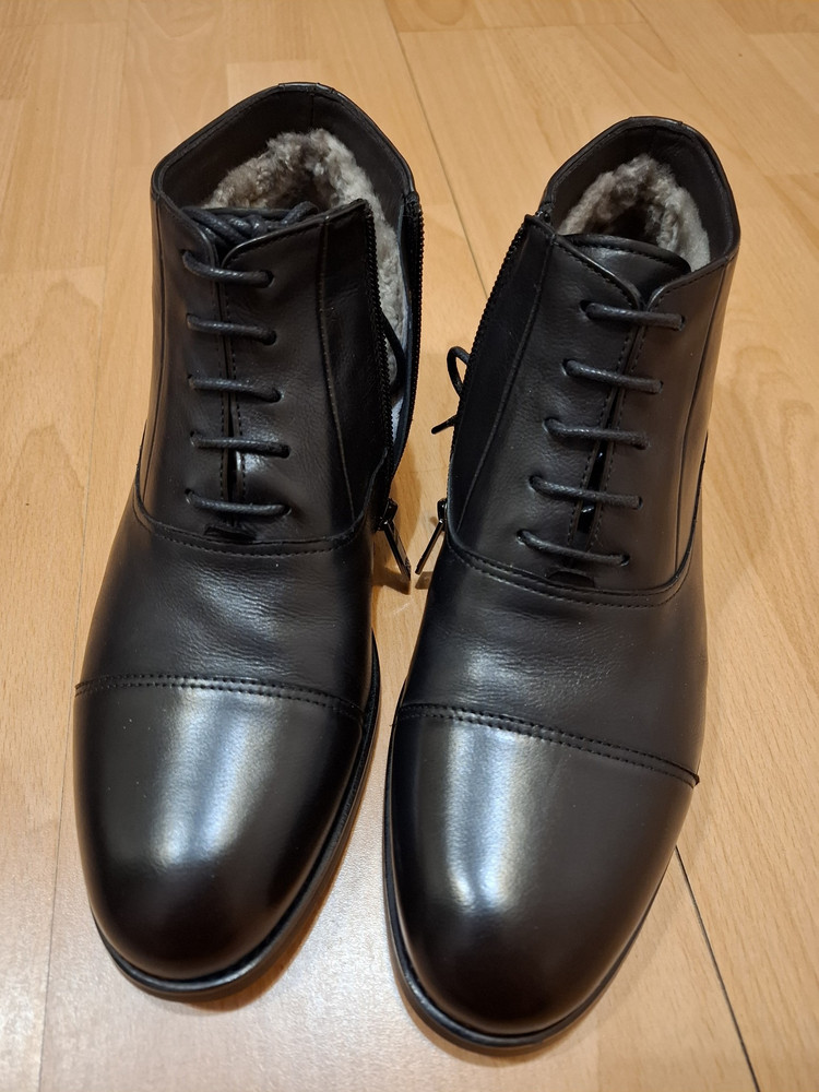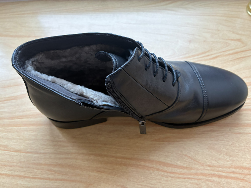 Внутренний материал – 100% натуральный мех, который обеспечивает тепло и комфорт даже в самые холодные дни. Полимерная подошва гарантирует надежное сцепление с поверхностью, обеспечивая безопасность на различных типах дорог. Подходят на стандартную полноту стопы и небольшой +/-