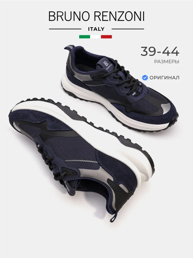 Мужские кроссовки BRUNO RENZONI синего цвета — идеальный выбор для любителей спортивного стиля.