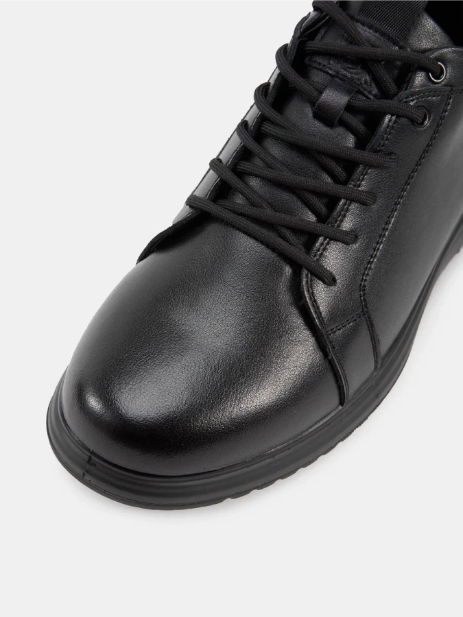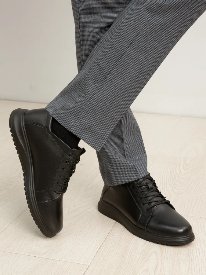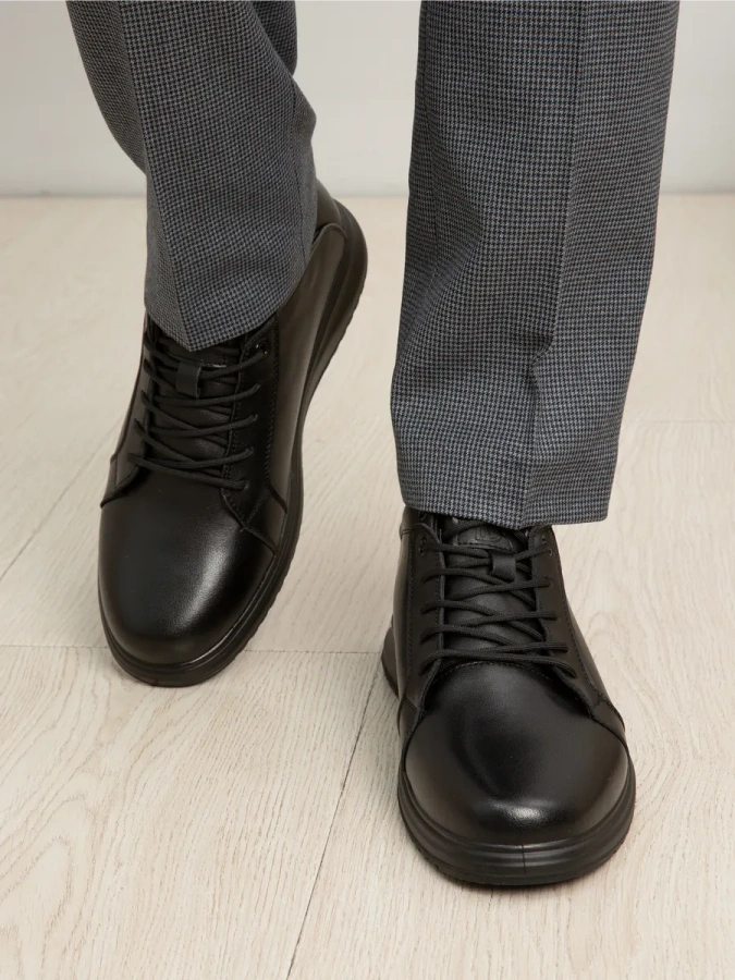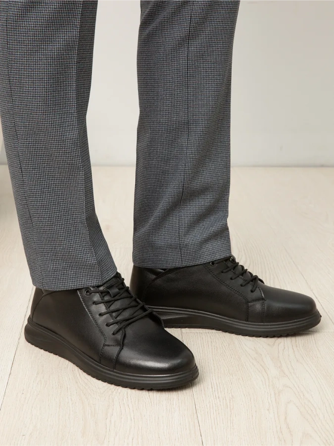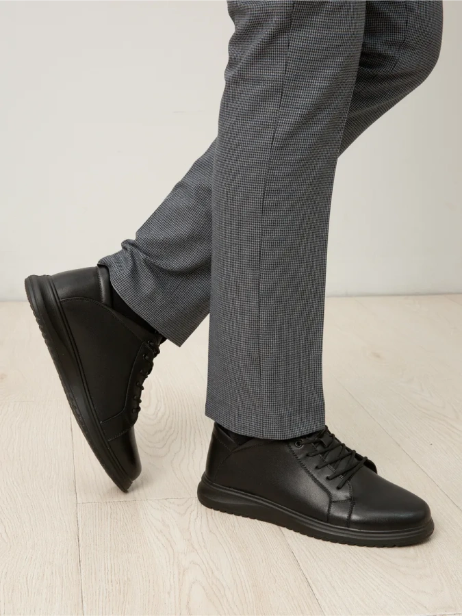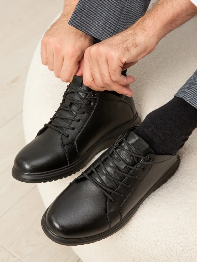 Модель изготовлена из 100% натуральной кожи — это обеспечивает не только стильный внешний вид, но и высокое качество. Тёплая шерстяная подкладка и стелька создают комфорт и уют в любую погоду. Полимерная подошва высотой 2 см придаёт кедам лёгкость и устойчивость, а высота каблука в 3 см делает модель удобной для повседневной носки. Шнуровка позволяет регулировать посадку по своему вкусу. Эти черные кеды станут отличным дополнением к вашему гардеробу.