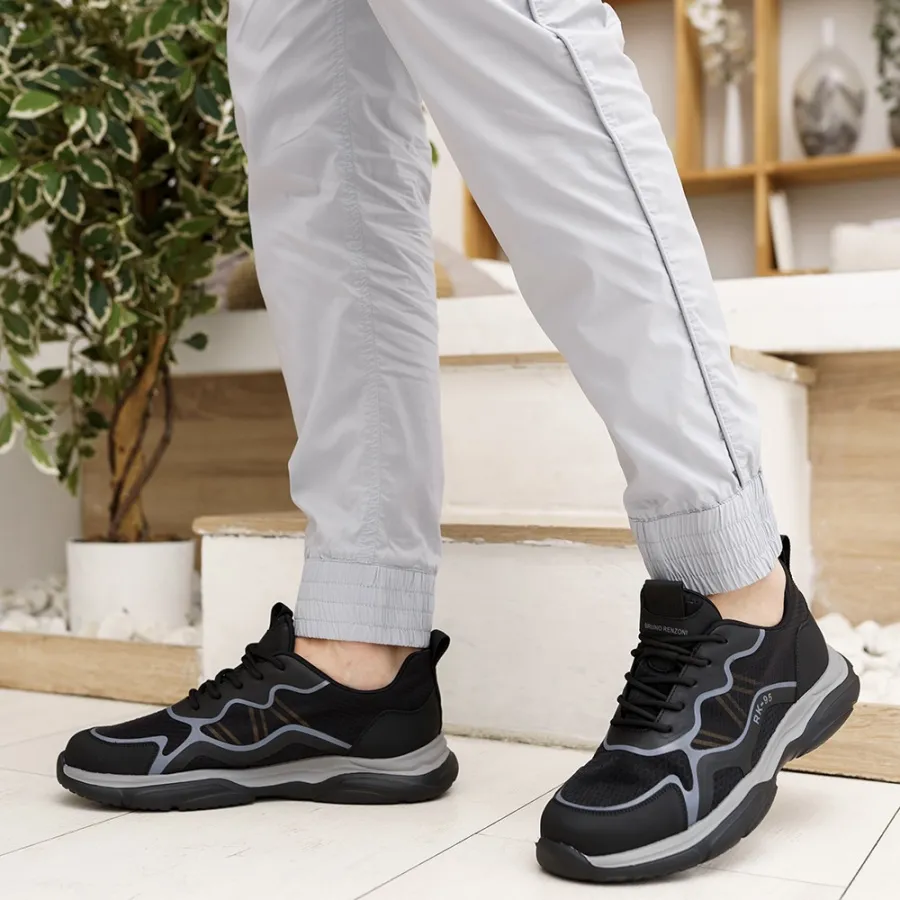Мужские текстильные кроссовки от итальянского бренда Bruno Renzoni. Длина стельки в см.: 39 - 26/ 40 - 26,5/ 41 - 27/ 42 - 27,5/ 43 - 28/ 44 - 28,5. Высота подошвы в пяточной части - 3,5 см., высота подошвы в носочной части - 1,5 см., высота задника - 7 см. Подкладка из высококачественного текстиля и съемная стелька из натуральной кожи придают максимальный комфорт. Идеально подойдут на теплую весну и лето. Перфорированная сетка обеспечивает естественную вентиляцию стопы. Спортивная подошва обладает износостойкостью и хорошим сцеплением с поверхностью. Наличие шнуровки позволяет регулировать подъем. Удобная колодка адаптирована под мужскую стопу и длительную носку. Подходят на стандартную полноту стопы и небольшой +/-.