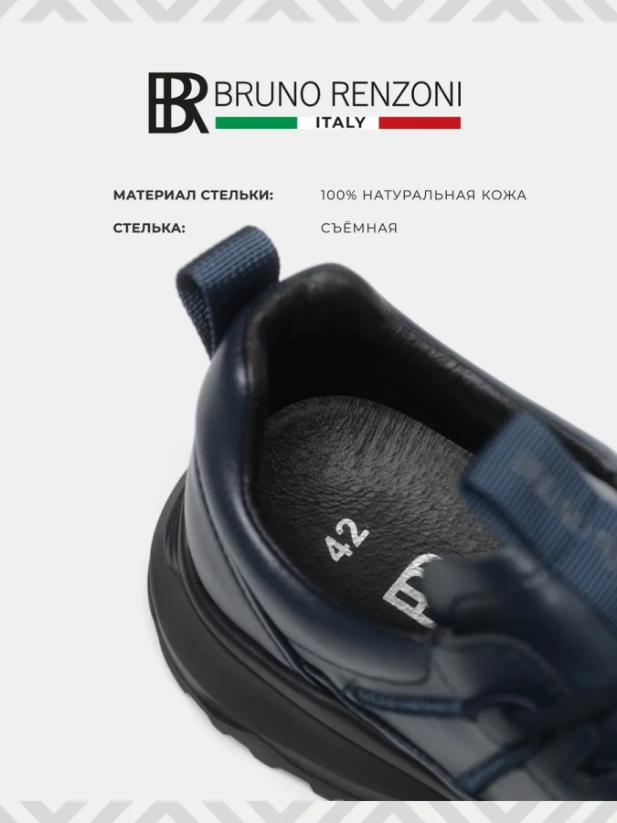 Обувь Бруно Рензони выполнена из цельной натуральной телячьей кожи высшего сорта. Такая качественная кожа имеет лучшую прочность и долговечность.