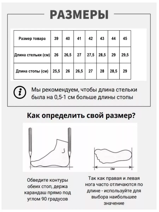 Длина стельки: 40р-26,5см/41р-27см/42р-27,5см/43р-28см/44р-28.5см/45р-29см полнота G(7) стандарт