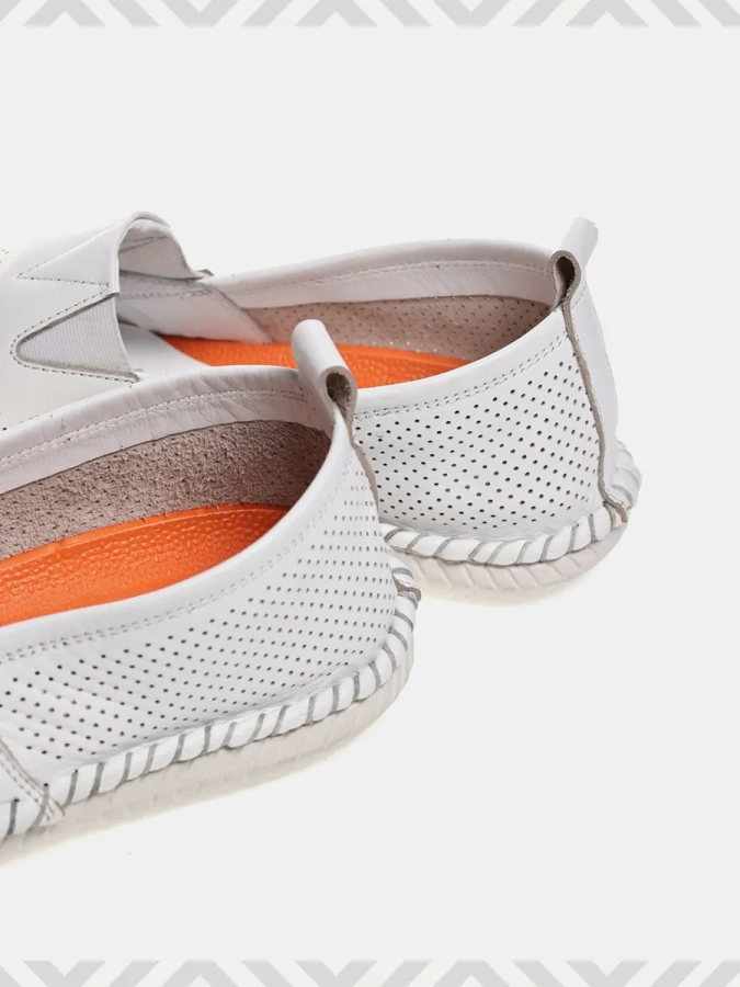 Изготовленные из 100% натуральной кожи, они обеспечивают не только непревзойдённый внешний вид, но и долговечность. Белый цвет слипонов делает их универсальными — они легко впишутся в любой летний образ в стиле casual. Высота подошвы 1,5 см и высота каблука 3 см обеспечивают удобство и лёгкость при ходьбе. Эластичная вставка вместо застёжки делает обувь практичной и удобной в использовании.