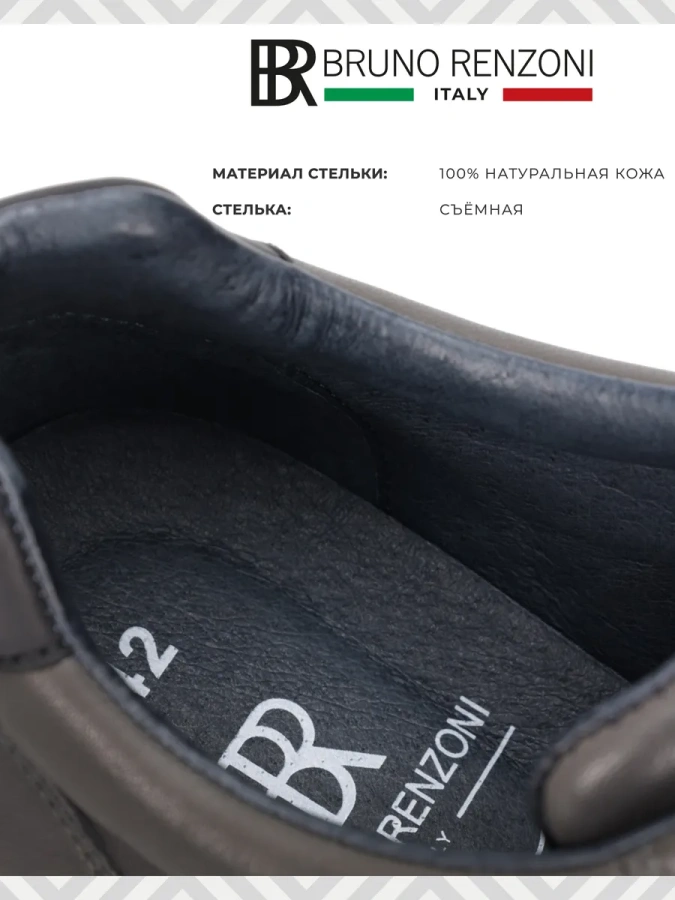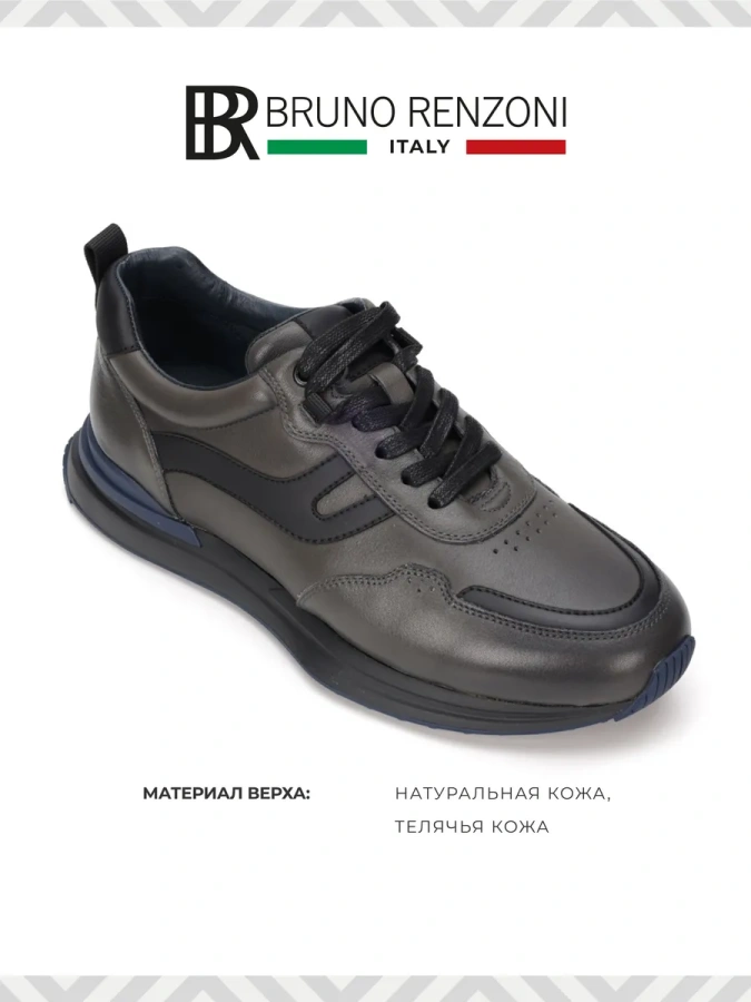BRUNO RENZONI – это бренд, который символизирует высокое качество и стиль Италии. Материал верха, из которого изготовлены кроссовки, – 100% натуральная кожа. Это не только обеспечивает долговечность, но и добавляет изысканности Вашему образу.