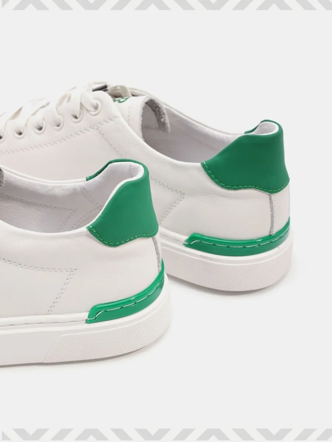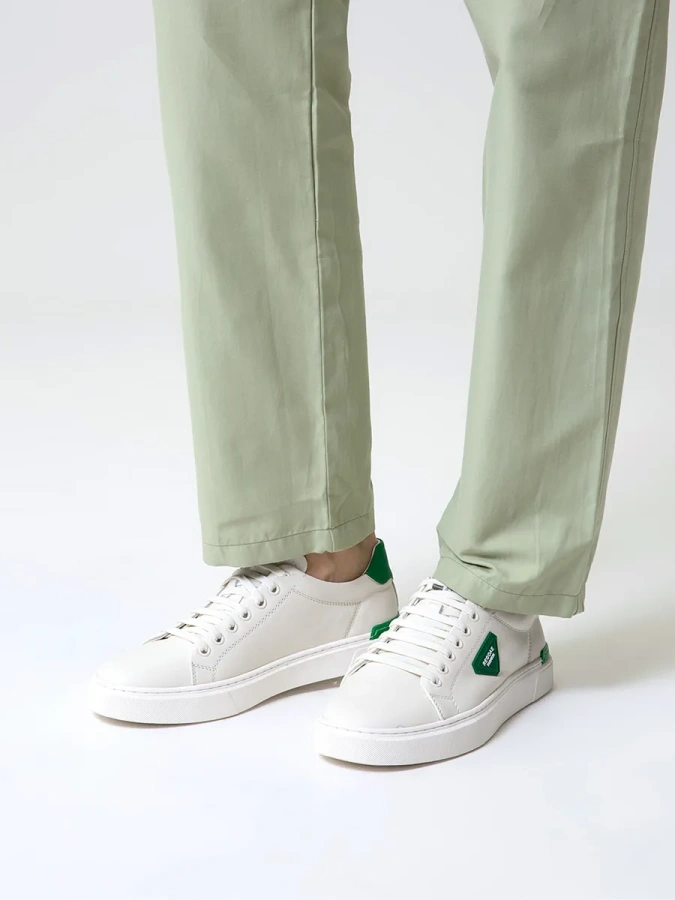 Модель изготовлена из 100% натуральной кожи в классическом белом цвете. Мягкая кожаная стелька и подкладка обеспечивают комфорт при носке, а текстильная подкладка добавляет воздушность. Резинка с фиксатором на застёжке облегчает надевание и обеспечивает надёжную фиксацию. Высота подошвы в 2 см и небольшой каблук в 3 см придают кедам удобство и лёгкость. Идеальный выбор для активного летнего образа от итальянского бренда.