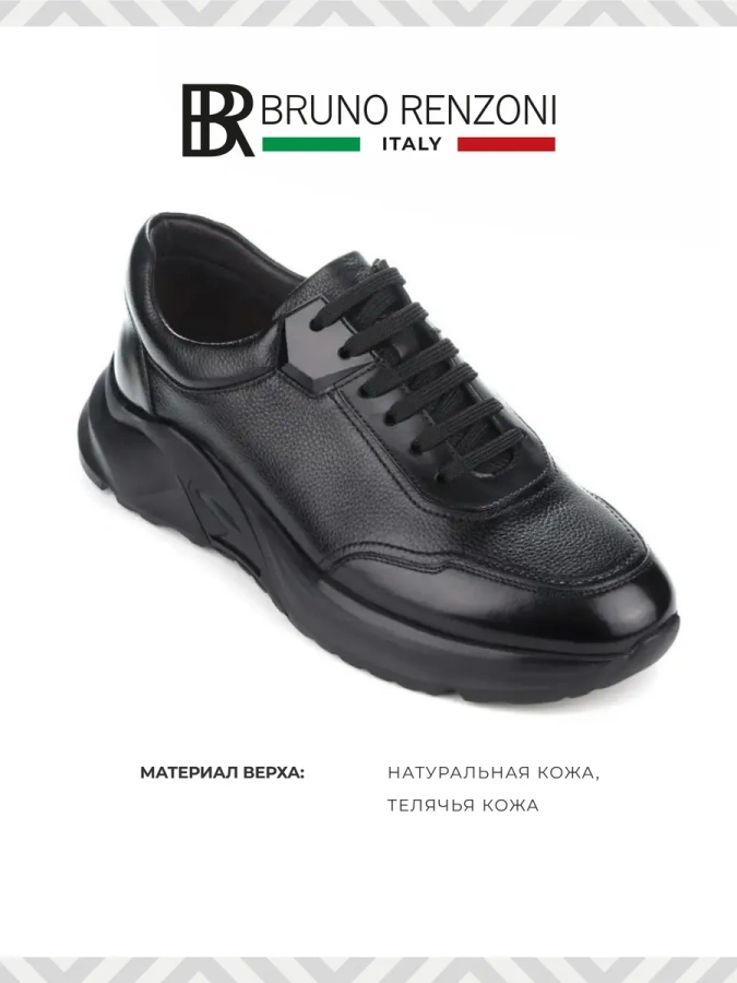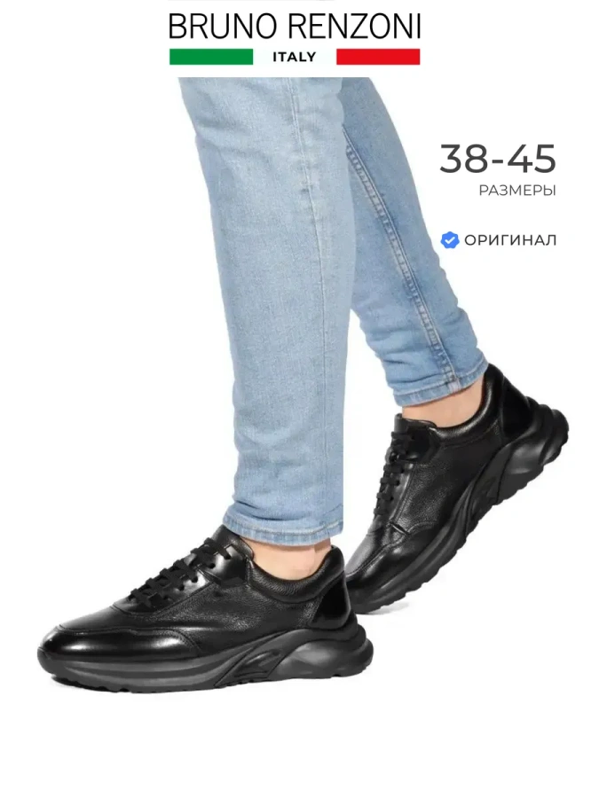 Мужские кроссовки из натуральной кожи от итальянского бренда Bruno Renzoni. Длина стельки в см.: 38 - 25,5/ 39 - 26/ 40 - 26,5/ 41 - 27/ 42 - 27,5/ 43 - 28/ 44 - 28,5/ 45 - 29. Высота подошвы в пяточной части - 4 см., высота подошвы в носочной части - 2 см., высота задника - 7 см. Подкладка и съемная стелька выполнены из натуральной кожи, что повышает прочность изделия и придает максимальный комфорт. Идеально подойдут на весну и осень. Дизайнерское решение в виде сочетания зернистой и гладкой кожи в разных оттенках - изюминка модели. Прочная шнуровка обеспечивает комфортную фиксацию на ноге. Спортивная подошва обладает износостойкостью и хорошим сцеплением с поверхностью. Удобная колодка адаптирована под мужскую стопу и длительную носку. Подходят на стандартную полноту стопы и небольшой +/-.