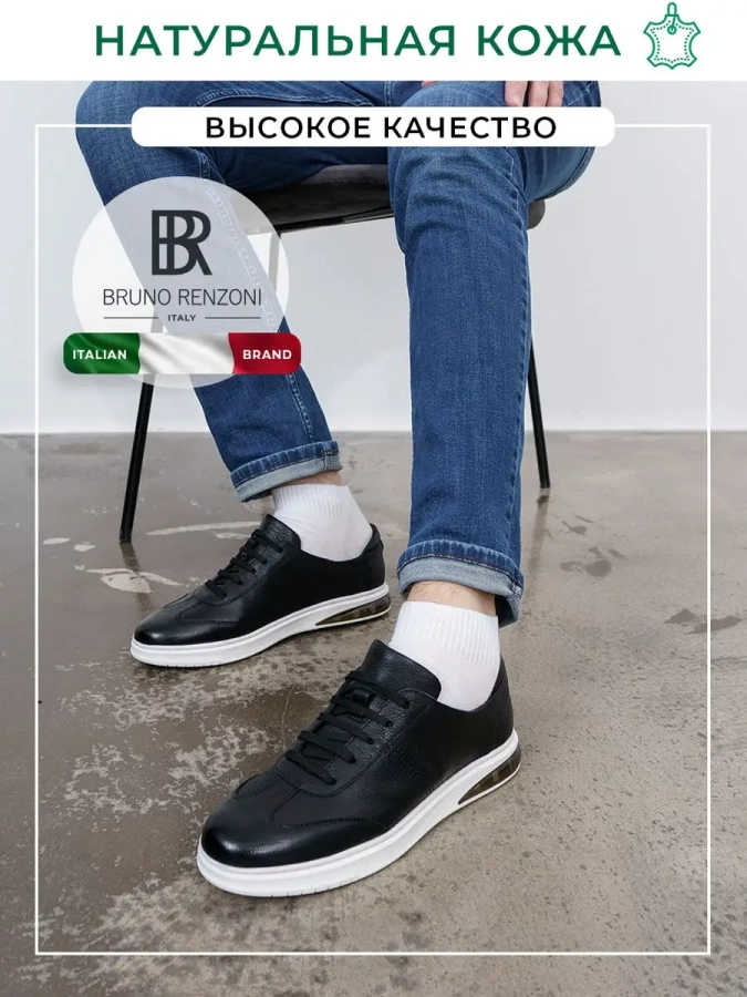 Мужские кеды из натуральной кожи от итальянского бренда Bruno Renzoni. Длина стельки в см.: 38 - 25,5/ 39 - 26/ 40 - 26,5/ 41 - 27/ 42 - 27,5/ 43 - 28/ 44 - 28,5/ 45 - 29. Высота подошвы в пяточной части – 3 см., высота подошвы в носочной части – 2 см., высота задника - 6 см. Сочетание гладкой и зернистой кожи, а также дизайнерская полупрозрачная вставка в подошва - изюминка модели. Подкладка и съемная стелька выполнены из натуральной кожи, что повышает прочность изделия и придает максимальный комфорт. Модель оснащена эластичной шнуровкой обеспечивающей комфортную фиксацию на ноге. Плоская контрастная подошва обладает износостойкостью и хорошим сцеплением с поверхностью. Универсальная модель прекрасно подойдет на каждый день. Удобная колодка адаптирована под мужскую стопу и длительную носку. Подходят на стандартную полноту стопы G(7) и небольшой +/-