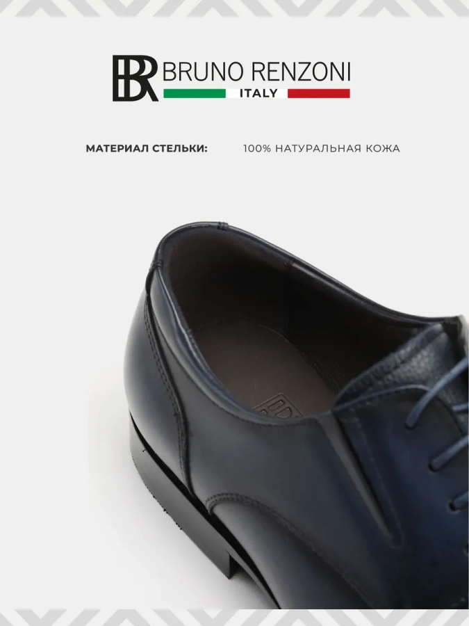 Дизайнеры бренда Bruno Renzoni сделали особый акцент на качестве материалов: верх и внутренняя подкладка изготовлены из 100% натуральной гладкой кожи, что гарантирует отличную вентиляцию и долгий срок службы обуви.