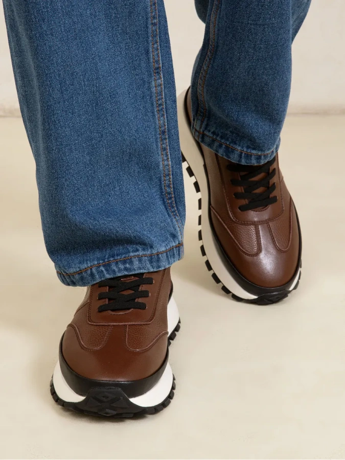 Люксовые мужские кроссовки из цельной натуральной телячьей кожи высшего сорта — это воплощение элегантности и комфорта. Толстая подошва обеспечивает не только стильный вид, но и отличную амортизацию, делая каждый шаг лёгким и пружинистым.Адаптация обувных колодок под форму мужской стопы гарантирует абсолютное удобство при ходьбе. Натуральная кожаная подкладка и съёмная стелька из натуральной кожи создают комфортный микроклимат для ступни, обеспечивают естественную циркуляцию воздуха и придают максимальный комфорт. Весенние кожаные кроссовки станут идеальным дополнением к любому образу, подчеркнут индивидуальность и стиль своего владельца.