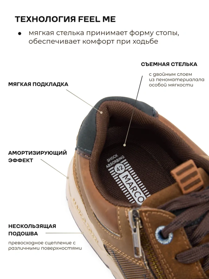 Мы тщательно отбираем модели, выполненные из натуральных материалов — дышащей кожи, прочного текстиля и мягкой замши. Это не только придаёт обуви элегантный и стильный внешний вид, но и обеспечивает естественную вентиляцию, комфортную посадку по ноге и долговечность даже при интенсивной эксплуатации.