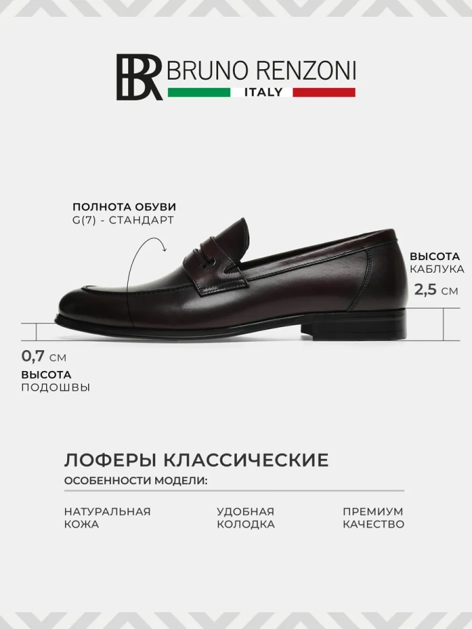 Изготовленная из цельной натуральной телячьей кожи высшего сорта, она отличается прочностью и долговечностью. Дизайнеры создали модельный ряд, который выглядит фантастически солидно. Подологи адаптировали обувные колодки под форму мужской стопы, обеспечив абсолютное удобство при ходьбе. Модели соответствуют европейским стандартам и изготавливаются на итальянском профессиональном оборудовании. Классические лоферы от Bruno Renzoni идеально дополнят мужской костюм , создавая гармоничный и стильный образ.