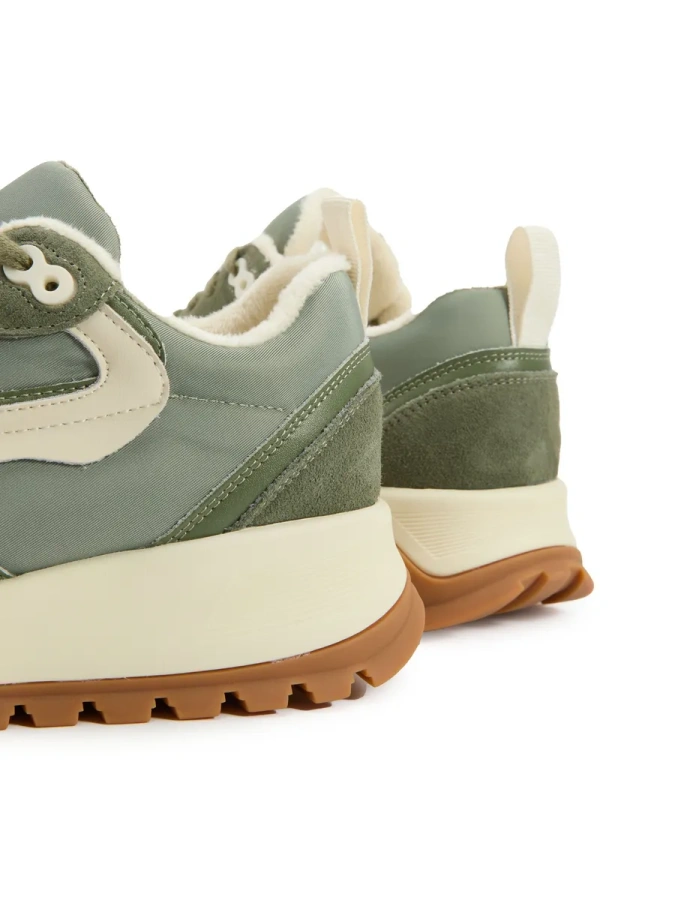 Хаки — цвет, который гармонично впишется в любой образ. Материал верха из натуральной замши и текстиля обеспечивает комфорт и долговечность, а ворсистая подкладка добавляет уюта. Эти кроссовки станут незаменимой частью вашего гардероба и подойдут для любого сезона.