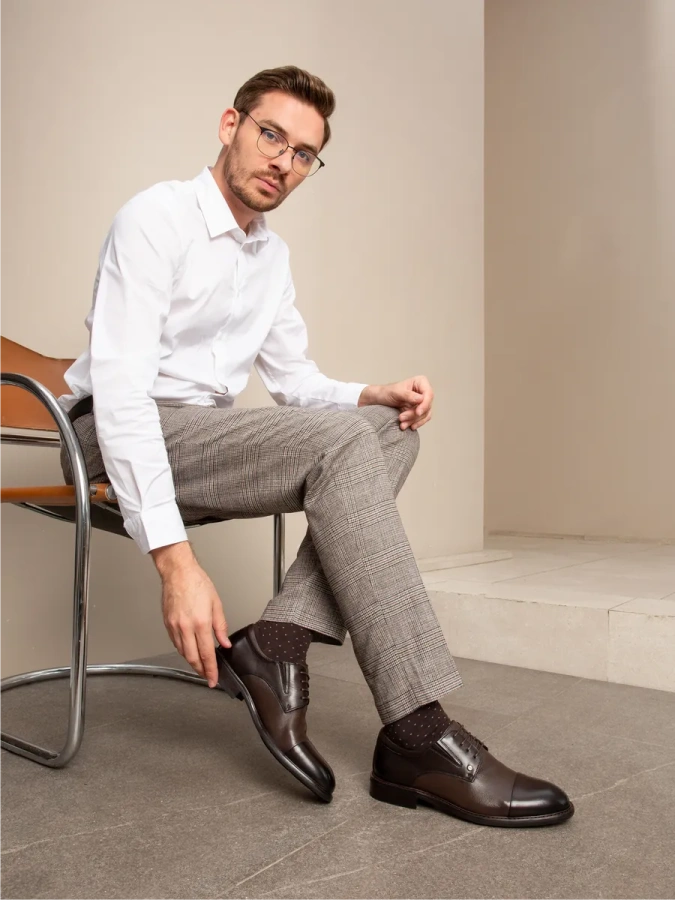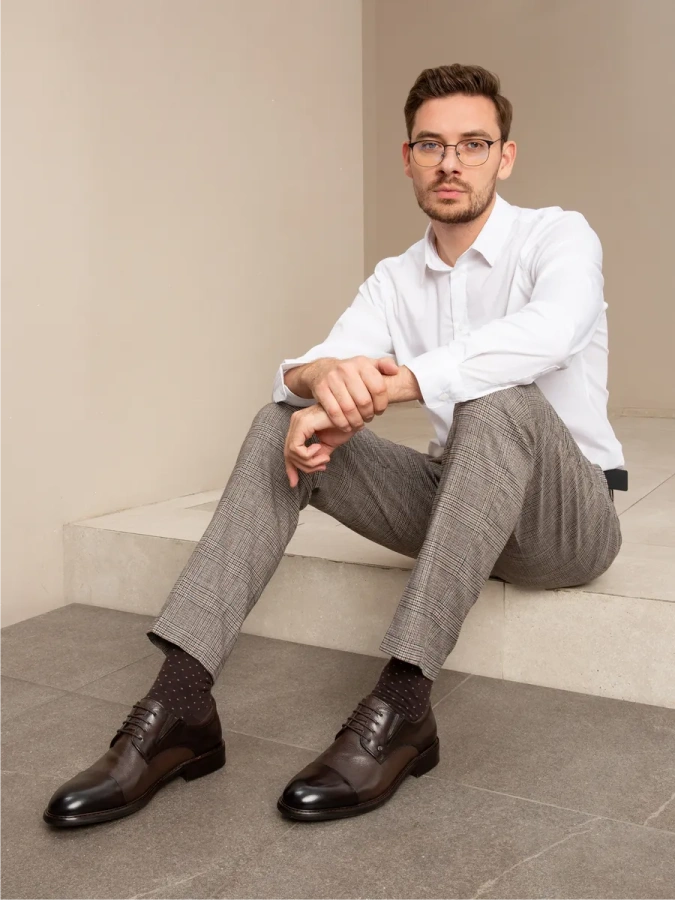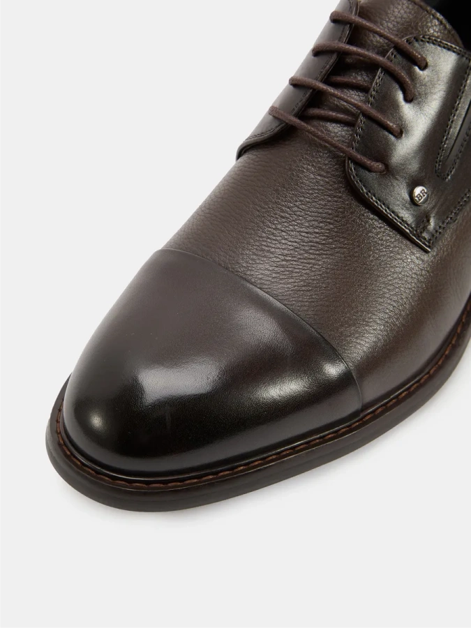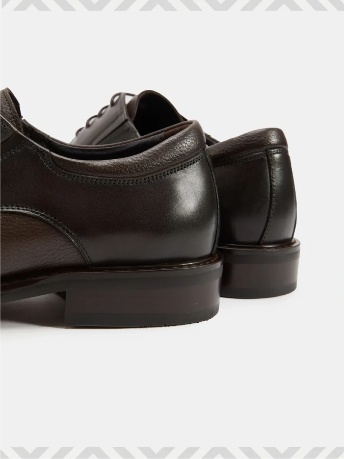 Модель изготовлена из 100% натуральной кожи, что придаёт туфлям не только изысканный внешний вид, но и долговечность. Коричневый цвет универсален и легко впишется в ваш гардероб, дополняя образы в стиле casual. Резиновая подошва обеспечивает отличное сцепление с поверхностью, а высота подошвы в 1 см и каблука в 3 см добавляет удобства и стиля. Шнуровка позволяет регулировать посадку туфли по своему усмотрению. Эти мужские туфли идеально подойдут для осени и станут отличным дополнением к вашему гардеробу.