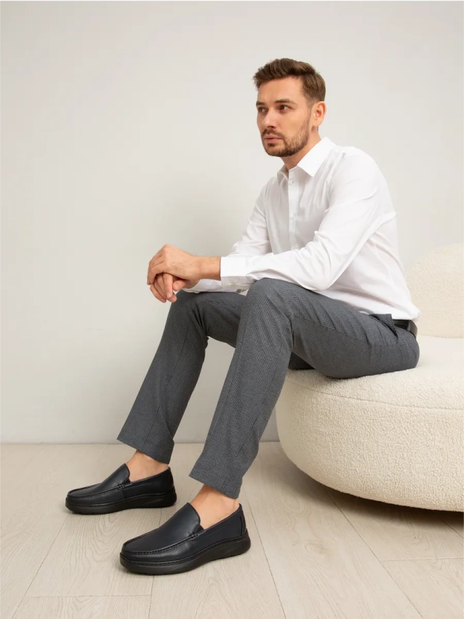 Модель изготовлена из 100% натуральной кожи, что обеспечивает комфорт и долговечность. Синий цвет мокасин станет отличным дополнением к повседневному образу в стиле casual. Мягкая кожаная подкладка и стелька создают уют и тепло, а полимерная подошва высотой 2,3 см обеспечивает удобство при ходьбе. Высота каблука 3,5 см придаёт модели изящность без лишнего подъёма. Мокасины идеально подойдут для осени и станут незаменимой частью вашего гардероба.