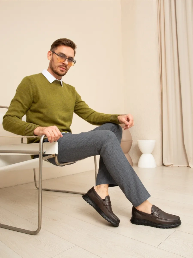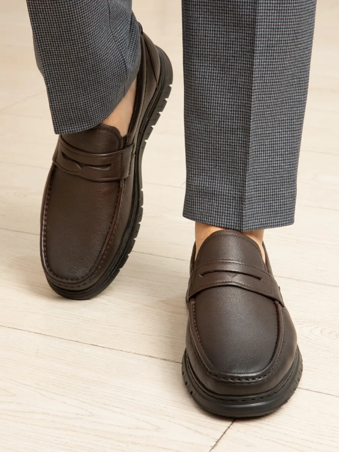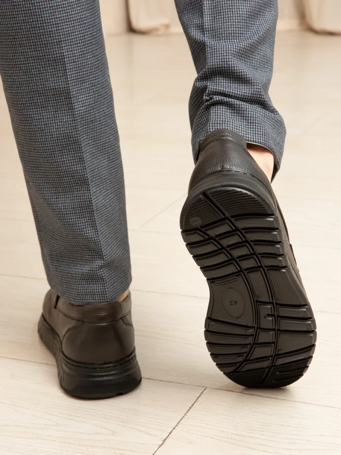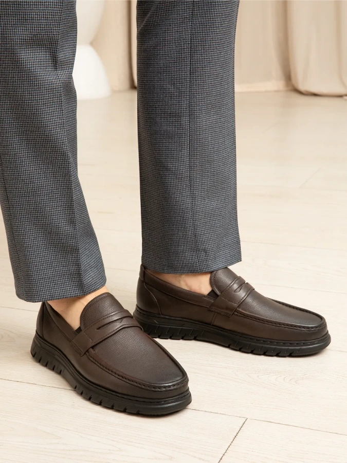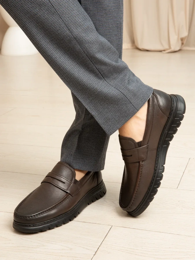 Модель изготовлена из 100% натуральной кожи, что обеспечивает её высокое качество и долговечность. Коричневый цвет мокасин гармонично впишется в ваш осенний гардероб, придавая образу стиль и элегантность. Удобная подошва из полимерного материала и отсутствие застёжек обеспечивают комфорт при ходьбе. Высота подошвы — 2 см, высота каблука — 4 см. Мокасины это выбор для любителей удобной и качественной обуви в стиле casual.