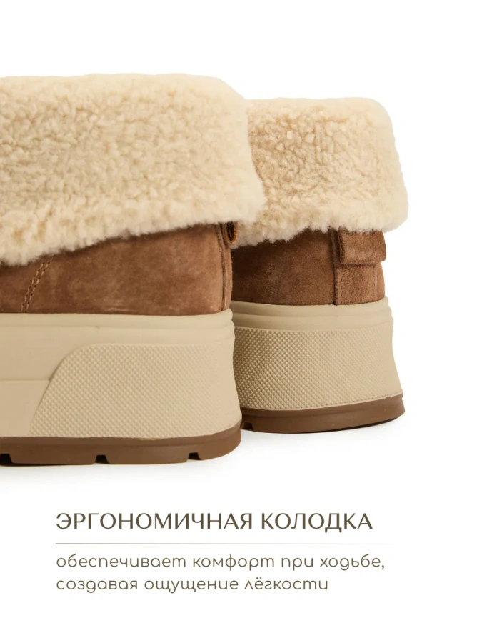 Выполненные из 100% натуральной кожи (велюра), они гарантируют долговечность и комфорт. Искусственный мех подкладки и стелька из байки обеспечивают тепло и уют в холодное время года.