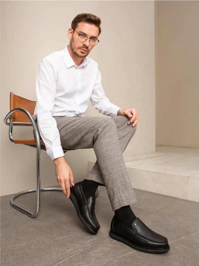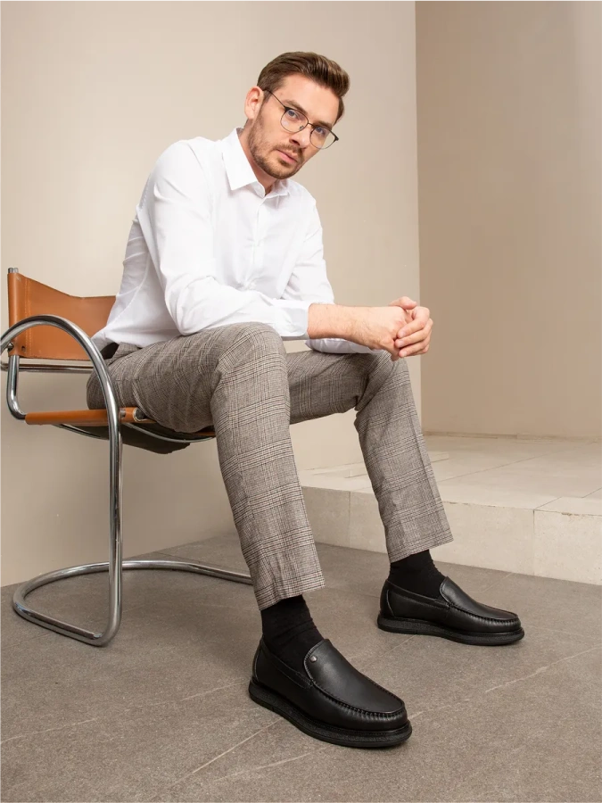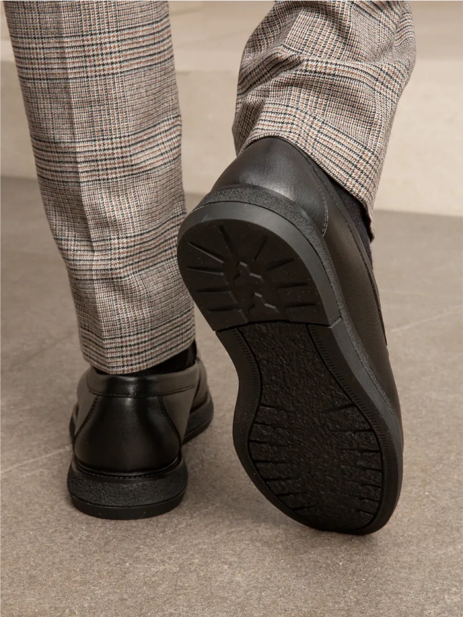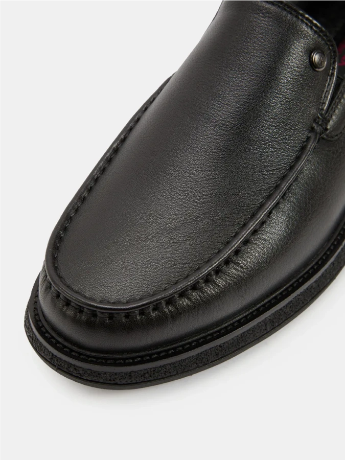 Войлочная подкладка и шерстяная стелька обеспечивают тепло и уют, делая эти мокасины идеальным выбором для осени и зимы. Резиновая подошва высотой 2 см обеспечивает отличное сцепление с поверхностью, а отсутствие каблука придаёт обуви лёгкость и непринуждённость.