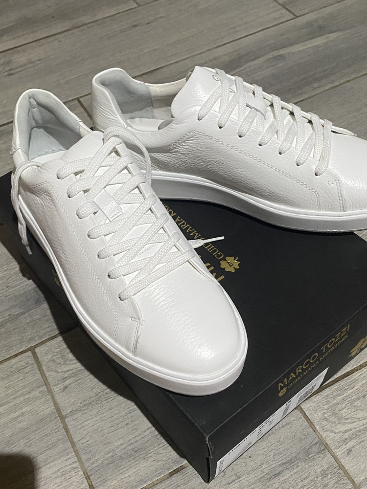 Белый цвет модели придаёт обуви универсальность, позволяя сочетать её с разными элементами гардероба.