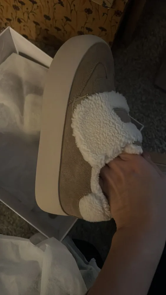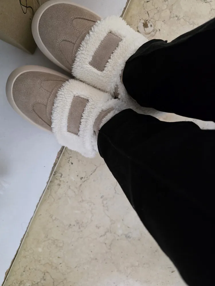 Бежевый цвет и материал верха из 100% натуральной кожи (замши) придают обуви изысканность и элегантность. Тёплая шерстяная подкладка и стелька обеспечивают комфорт и сохранение тепла в холодное время года. Резиновая подошва гарантирует долговечность и устойчивость. Эти кеды станут отличным дополнением к вашему зимнему гардеробу, сочетая в себе стиль и практичность.