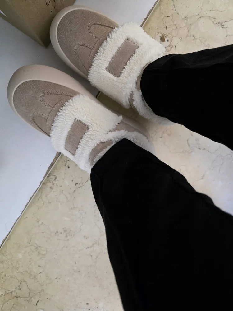 Бежевый цвет и материал верха из 100% натуральной кожи (замши) придают обуви изысканность и элегантность. Тёплая шерстяная подкладка и стелька обеспечивают комфорт и сохранение тепла в холодное время года. Резиновая подошва гарантирует долговечность и устойчивость. Эти кеды станут отличным дополнением к вашему зимнему гардеробу, сочетая в себе стиль и практичность.