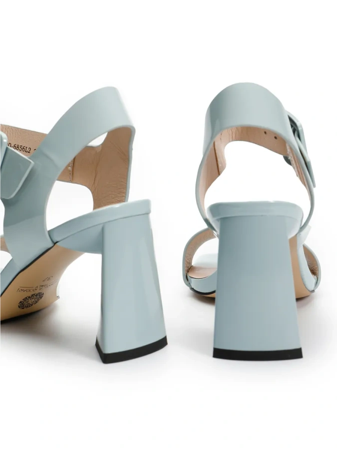 Итальянское качество и стиль делают эту модель незаменимой в вашем гардеробе. Лаковая натуральная кожа верха, подкладки и стельки обеспечивает комфорт и долговечность обуви.Удобная подошва из полимерного материала и фигурный каблук высотой 9 см делают босоножки не только стильными, но и удобными для повседневной носки в деловом стиле. Высота подошвы/платформы составляет 0,7 см, что обеспечивает изящный и гармоничный вид.БосоножкиI дополнены практичной застёжкой — пряжкой с ремешком, что гарантирует лёгкость в использовании и надёжную фиксацию на ноге. Голубой цвет модели придаст яркости вашему образу и станет отличным дополнением к гардеробу.