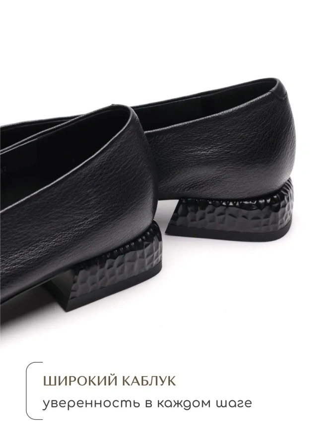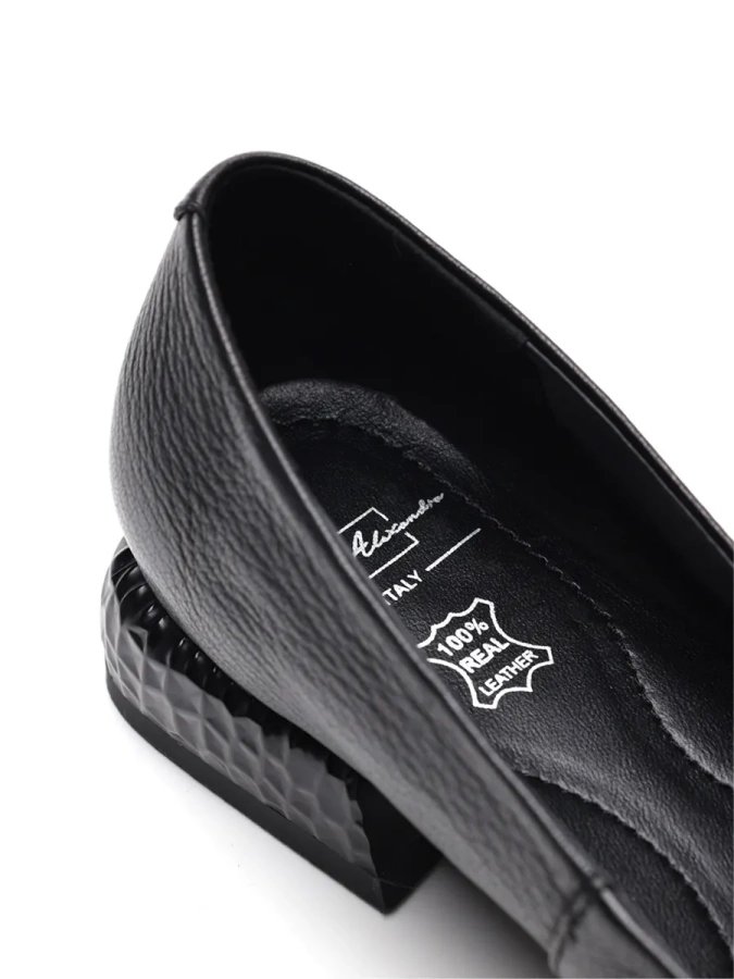 Балетки SOFIA-ALEXANDRA — это воплощение элегантности и комфорта. Изготовленные в Италии из 100% натуральной кожи, они станут отличным дополнением к вашему гардеробу в сезоне осень — зима . Чёрный цвет делает эти балетки универсальными — они легко впишутся в любой образ в стиле casual. Высота каблука 3 см и трапециевидная его форма обеспечивают удобство и лёгкость при ходьбе. Натуральная кожа не только приятна на ощупь, но и долговечна, что гарантирует долгий срок службы обуви. Полимерная подошва высотой 0,5 см обеспечивает комфорт и удобство. Эти балетки — идеальный выбор для тех, кто ценит качество и стиль.