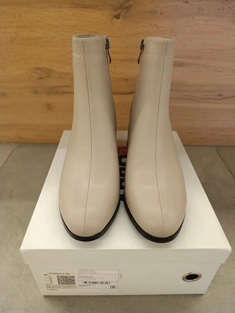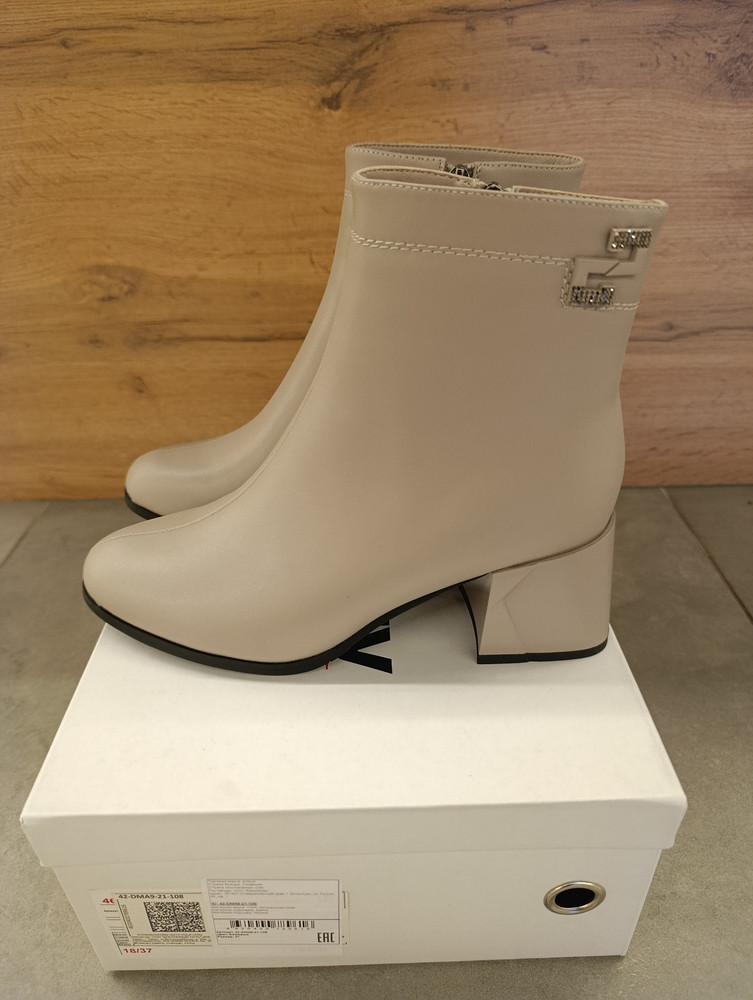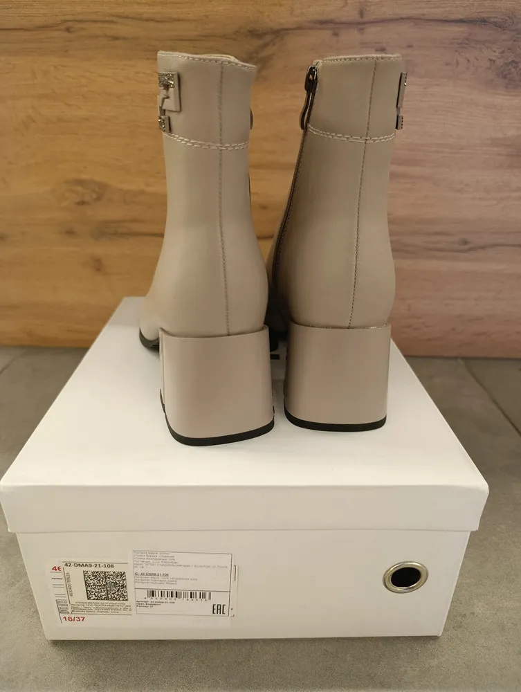 Модель изготовлена из 100% натуральной кожи, что обеспечивает её долговечность и изысканный внешний вид. Бежевый цвет ботильонов универсален и легко впишется в любой гардероб. Удобная трапециевидная форма каблука высотой 6,5 см делает обувь не только стильной, но и комфортной. Резиновая подошва с высотой платформы 0,7 см гарантирует хорошую износостойкость и устойчивость. Внутренняя застёжка-молния обеспечивает лёгкость надевания и дополнительную практичность. Ботильоны идеально подойдут для осени и станут отличным дополнением к деловому стилю.