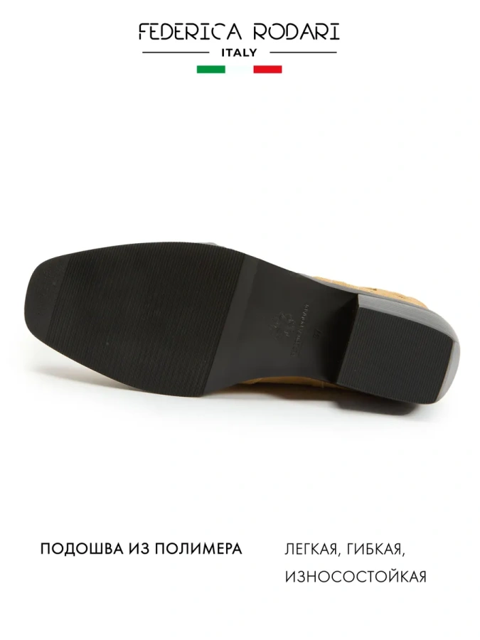 Благодаря байковой подкладке и стельке, казаки FEDERICA RODARI обеспечивают тепло и уют в прохладную погоду. Полимерная подошва высотой 1 см и ковбойский каблук высотой 4,5 см придают обуви стильный и узнаваемый вид.