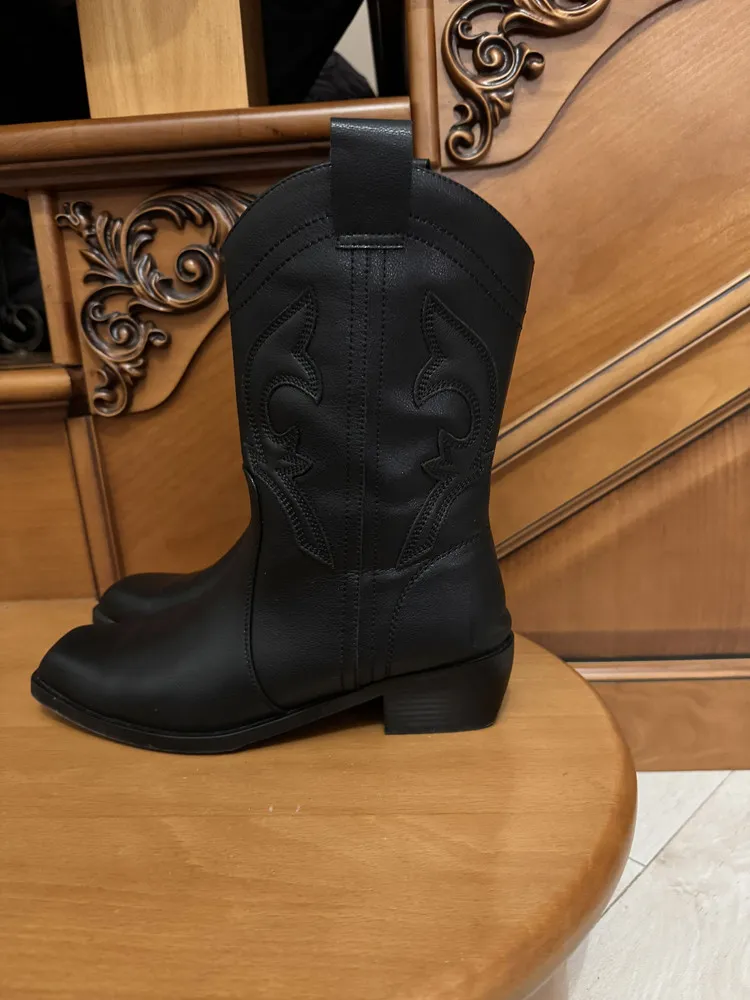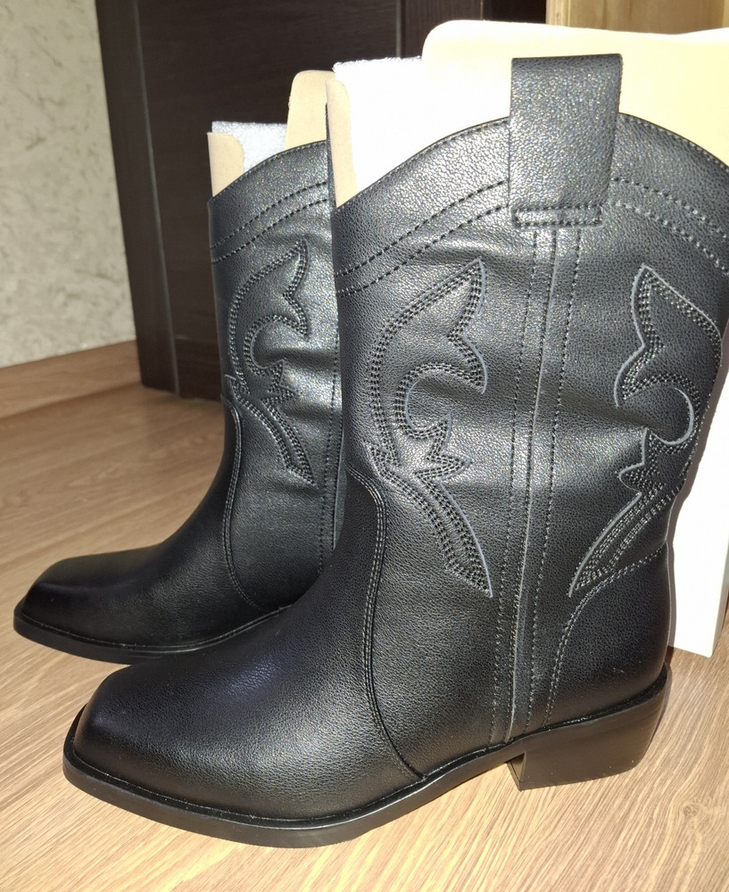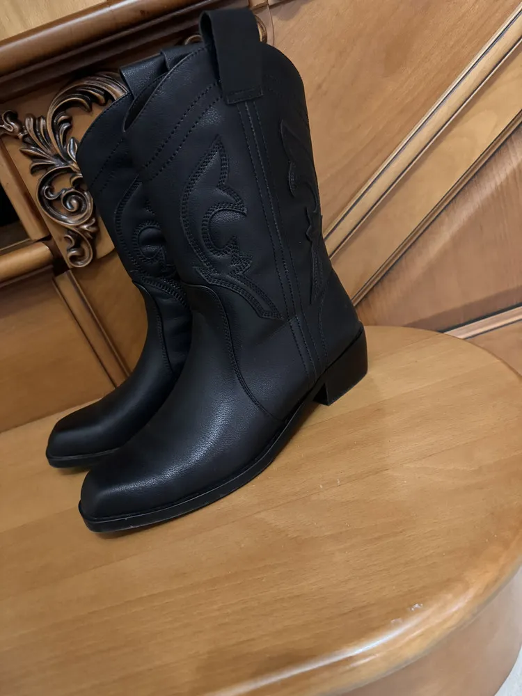 Чёрный цвет делает эти казаки универсальными и легко сочетаемыми с различными образами.