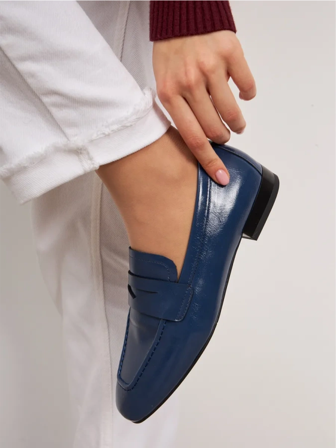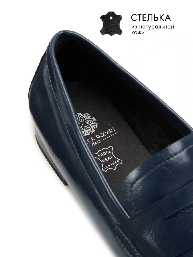 Модель изготовлена из 100% натуральной кожи, что обеспечивает её высокое качество и долговечность. Синий цвет туфель добавит в ваш образ нотку элегантности и стиля. Удобная подошва из полимерного материала и невысокий каблук (2 см) делают эти туфли комфортными для повседневной носки. Венский каблук придаёт модели изысканность, а отсутствие застёжки обеспечивает лёгкость и удобство.