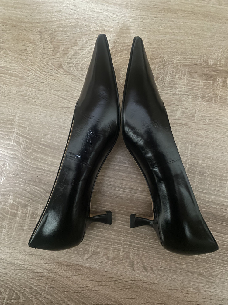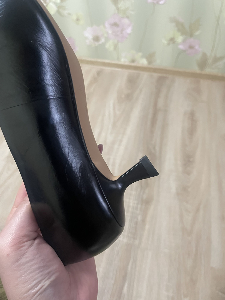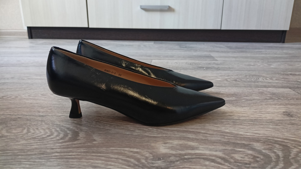 Модель изготовлена из 100% натуральной кожи, что обеспечивает её долговечность и элегантный внешний вид. Чёрные туфли-лодочки это идеальный выбор для деловых встреч и других официальных мероприятий. Устойчивый каблук-рюмочка высотой 5 см обеспечивает комфорт и уверенность при ходьбе. Удобная модель без застёжек прекрасно сидит на ноге.