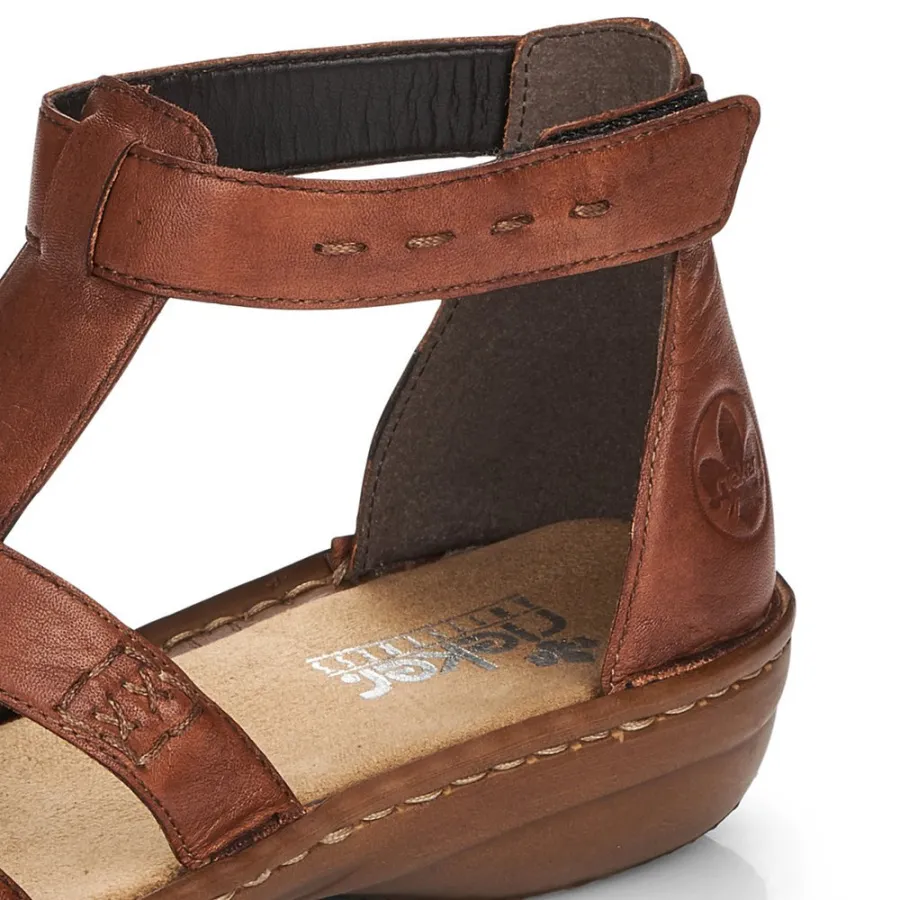 Женские сандалии из натуральной кожи от немецкого бренда Rieker. Главная отличительная черта обуви этого бренда - непревзойденное удобство и комфорт. Мягкая текстильная стелька с «эффектом памяти» Antistress индивидуально подстраивается под форму стопы, снимает чувство усталости и разгружает суставы, поддерживает и амортизирует стопу. Гибкая подошва обладает отличной амортизацией и хорошим сцеплением с поверхностью. Удобная колодка адаптирована под женскую стопу и длительную носку, а наличие застежки на липучке и эластичной вставки на подъеме обеспечивают комфортную посадку и надежную фиксацию на ноге. Модель имеет полноту F и подойдет на стандартную и более узкую стопу.