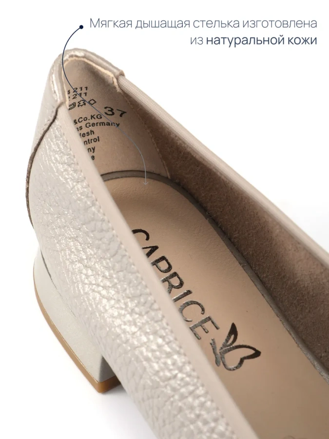 Изготовлены из 100% натуральной кожи, эти балетки от бренда CAPRICE станут отличным дополнением к вашему образу в стиле casual. Бежевый цвет универсален и легко сочетается с различными элементами гардероба. Низкий трапециевидный каблук высотой 2 см и подошва высотой 0,5 см обеспечивают комфорт и удобство при ходьбе. Модель без застёжки идеально подходит для повседневной носки и подарит ощущение лёгкости и стиля в каждом шаге.