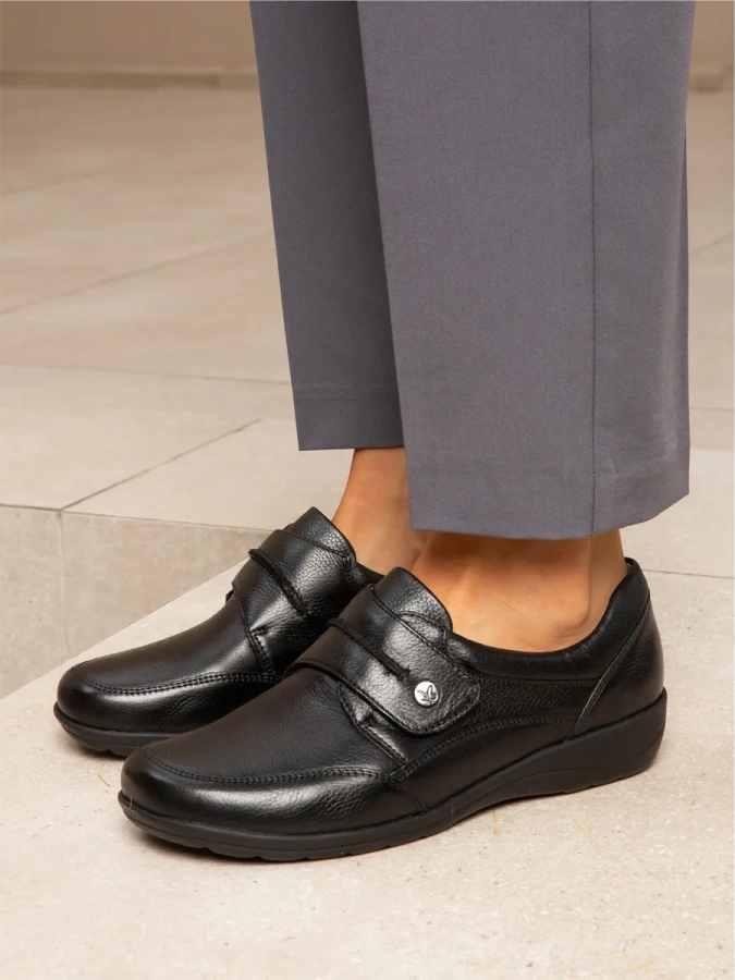 Модель изготовлена из 100% натуральной кожи, что обеспечивает комфорт и долговечность. Чёрные туфли CAPRICE — идеальный выбор для осеннего сезона. Они гармонично впишутся в повседневный образ, добавив ему стиля и элегантности. Удобная танкетка высотой 3,5 см и практичный каблук делают модель удобной в носке, а застёжка на липучке обеспечивает лёгкость в использовании. Высота подошвы — 1 см. Подкладка из искусственной кожи гарантирует износостойкость, а стелька из натуральной кожи создаёт дополнительный комфорт при ходьбе.