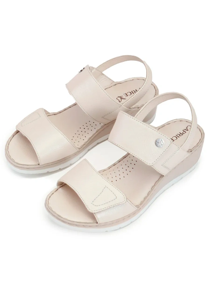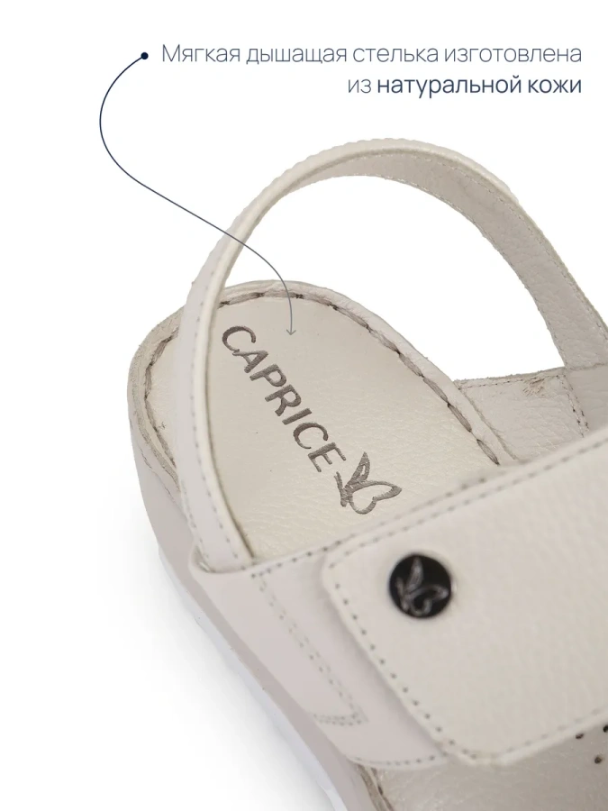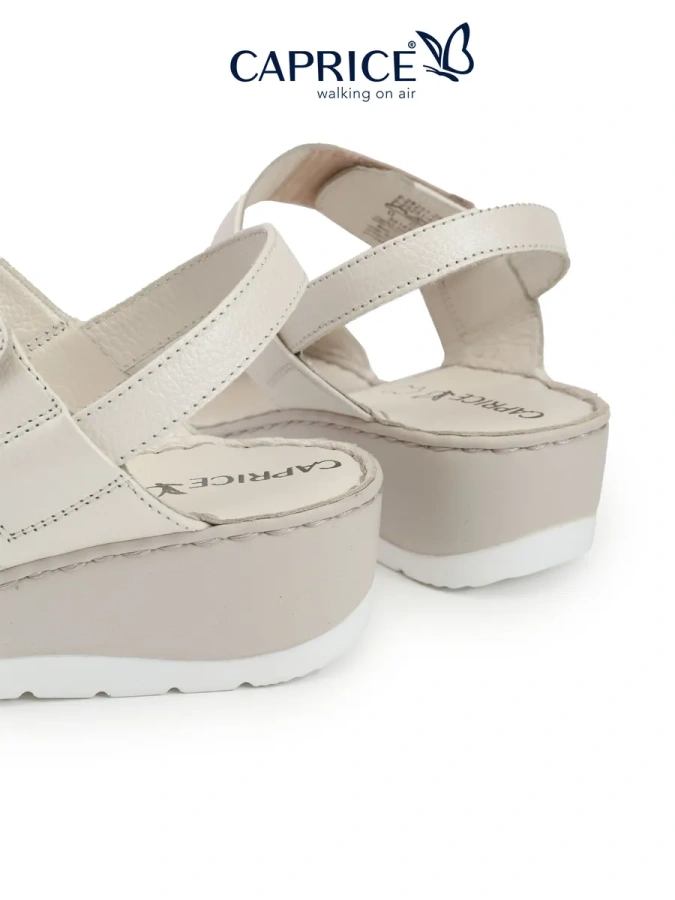 Высота подошвы в пяточной части - 5 см., высота подошвы в носочной части – 1,5 см. Полнота – G (7) (на стандартную полноту стопы). Босоножки CAPRICE — идеальный выбор для летних дней. Они выполнены из 100% натуральной кожи, что обеспечивает их долговечность и комфорт в носке. Бежевый цвет босоножек универсален и легко впишется в любой образ в стиле casual. Удобная танкетка высотой 5 см и небольшая платформа (1,5 см) делают эти босоножки не только стильными, но и удобными для длительных прогулок. Липучки обеспечивают лёгкость и удобство при обувании и использовании. Босоножки CAPRICE — это сочетание качества, стиля и комфорта, которое станет отличным дополнением к вашему гардеробу в сезоне весна-лето 2024.