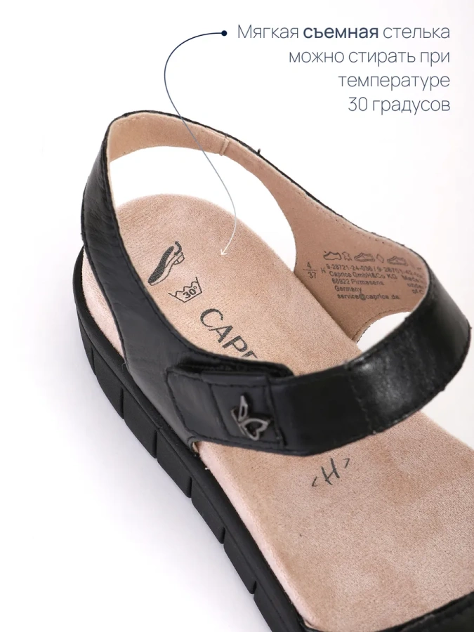 Выполненные из 100% натуральной кожи, они обещают долговечность и комфорт.Чёрный цвет сандалий делает их универсальными — они легко впишутся в любой летний образ в стиле casual. Удобная подошва высотой 2 см и высота каблука 4,5 см обеспечивают комфорт при ходьбе. Липучки в качестве застёжки гарантируют лёгкость и удобство при использовании.