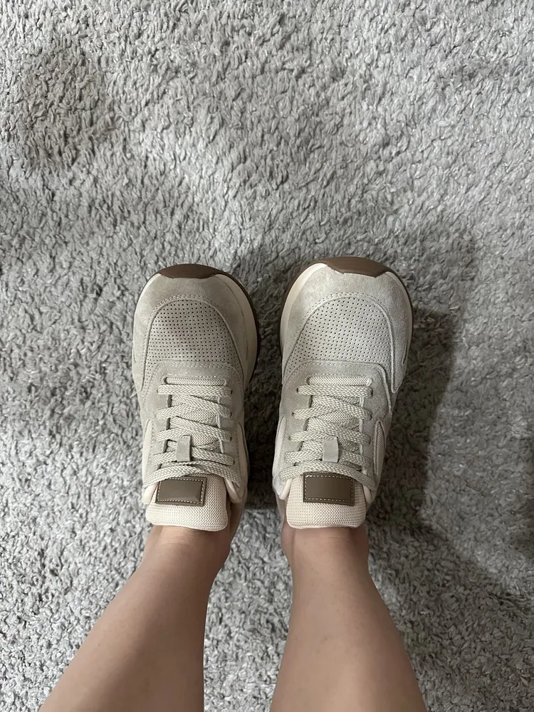 Натуральная кожа (велюр) обеспечивает комфорт и долговечность, а текстильная подкладка и стелька создают оптимальный микроклимат внутри обуви. Удобная шнуровка позволяет регулировать посадку обуви по своему усмотрению. Высота подошвы в 2 см и каблука в 4 см делает эти кроссовки не только стильными, но и удобными для повседневной носки.