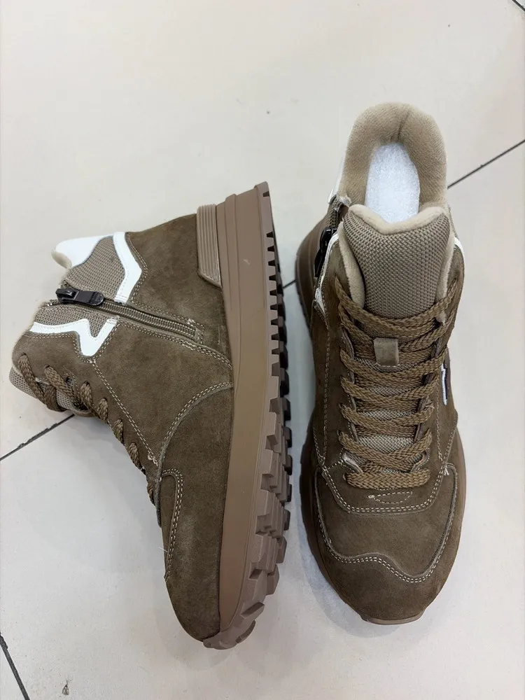 Натуральная кожа (замша) высокого качества, из которой изготовлен верх кроссовок, обеспечивает комфорт и долговечность. Мягкая байковая подкладка и стелька создают уют и тепло, необходимые в прохладное время года.