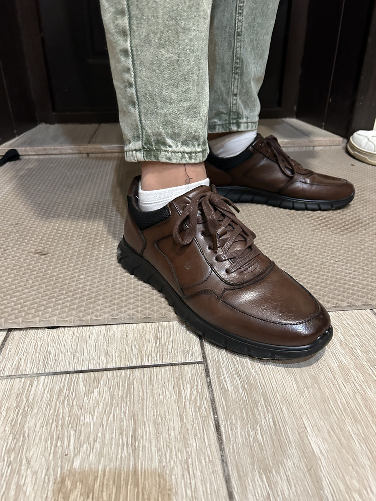 Модель изготовлена из 100% натуральной кожи, что придаёт ей изысканный и долговечный вид. Кроссовки в коричневом цвете станут отличным дополнением к вашему гардеробу и подойдут для любого образа. Мягкая текстильная подкладка и стелька из натуральной кожи обеспечивают комфорт при ходьбе, а подошва из полимера гарантирует хорошую амортизацию и износостойкость. Удобная шнуровка позволяет регулировать посадку обуви по своему усмотрению. Высота подошвы — всего 1 см, а высота каблука — 3,5 см, что обеспечивает удобство и устойчивость. Эти кроссовки идеальный выбор для активных мужчин, ценящих стиль и качество.