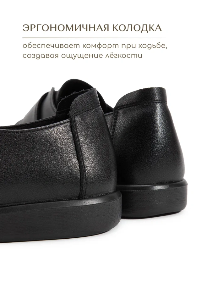 Чёрный цвет и высококачественная натуральная кожа делают эти туфли не только стильными, но и долговечными. Удобная подошва из полиуретана и натуральная кожа стельки обеспечивают комфорт при ходьбе. Высота подошвы — 1,5 см, высота каблука — 2,5 см. Подкладка из текстиля добавляет лёгкости и уюта. Эти туфли станут отличным дополнением к вашему образу в сезоне осень-зима 2026.