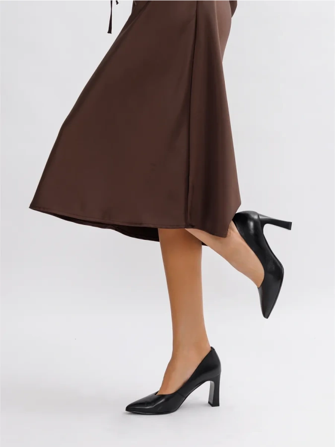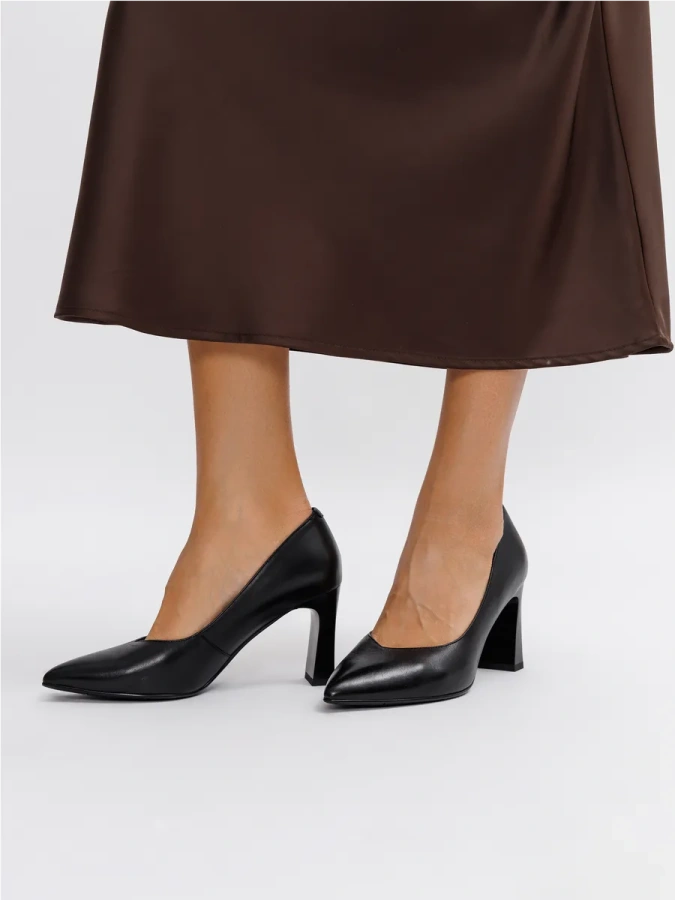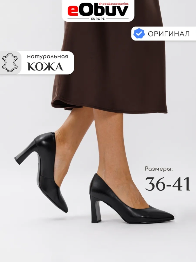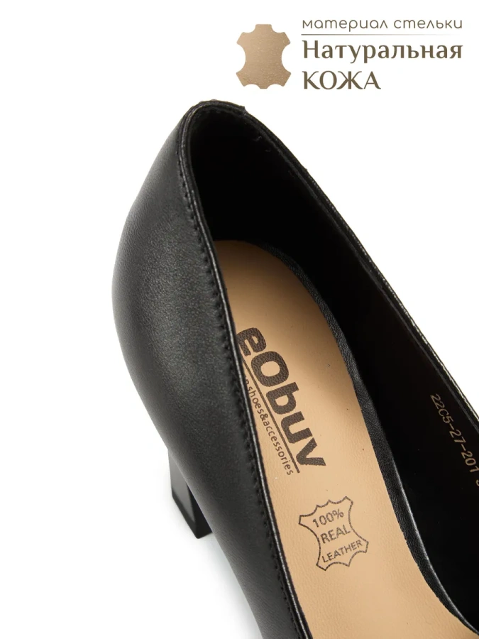 Модель изготовлена из 100% натуральной кожи, что придаёт туфлям лодочки basic eObuv чёрный цвет особую элегантность и долговечность. Эти туфли станут отличным дополнением к вашему гардеробу в осеннем сезоне. Устойчивый каблук-столбик высотой 8 см обеспечивает комфорт и уверенность при ходьбе. Резиновое основание подошвы гарантирует надёжное сцепление с поверхностью. Идеальный выбор для повседневного образа в стиле casual.