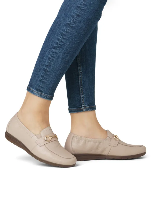 Бежевый цвет придаёт обуви универсальность, позволяя легко сочетать её с разными элементами гардероба. Изготовленные из 100% натуральной кожи, мокасины отличаются высоким качеством и долговечностью. Отсутствие подкладки компенсируется высоким качеством материала верха, а стельки из 100% натуральной кожи обеспечивают дополнительный комфорт. Резиновая подошва гарантирует хорошую износостойкость, а высота подошвы в 1 см и каблука в 3 см добавляет удобства и стиля. Мокасины от RIEKER — это выбор для тех, кто ценит качество и комфорт в каждой детали.