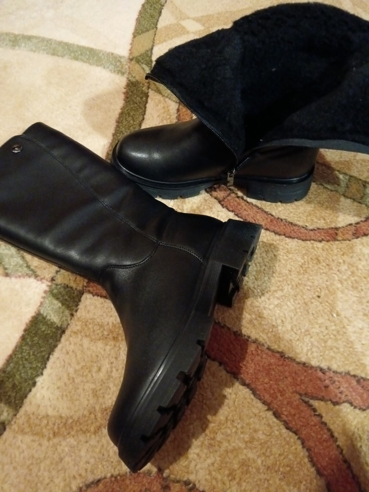 Модель изготовлена из 100% натуральной кожи, что обеспечивает её долговечность и привлекательный внешний вид. Чёрный цвет универсален и легко сочетается с различными элементами гардероба. Высота подошвы — 2 см, каблук — 4 см, устойчивый и удобный, форма — «кирпич». Подкладка и стелька из шерсти гарантируют комфорт в холодное время года. Молния с внутренней стороны модели обеспечивает удобство при носке. Эти сапоги в стиле casual станут отличным дополнением к вашему зимнему гардеробу и подойдут для повседневной носки.