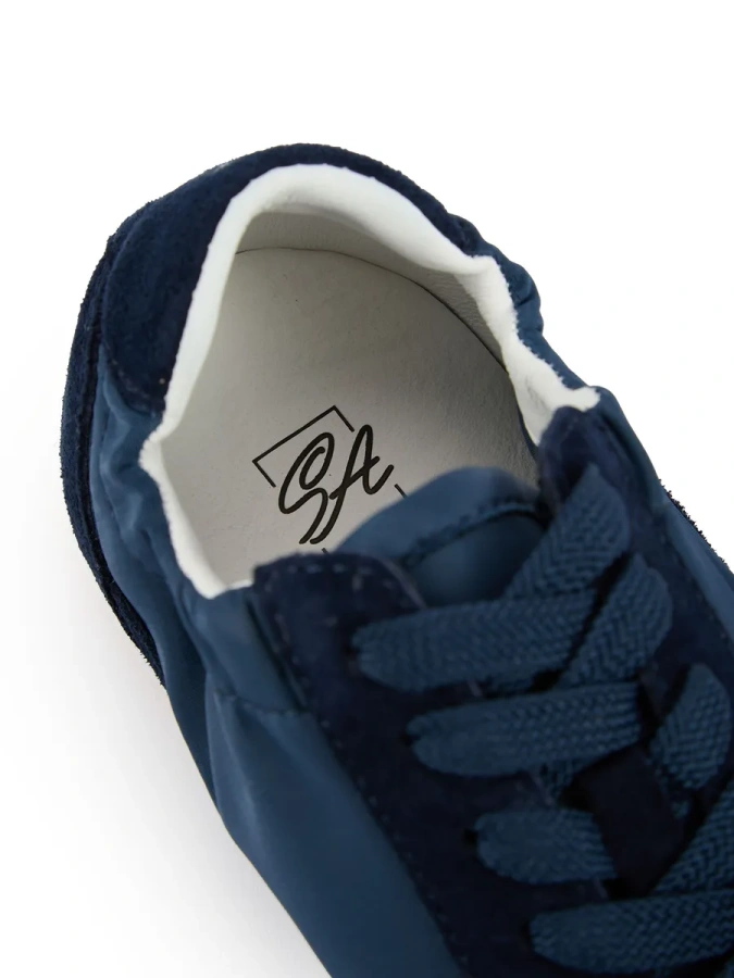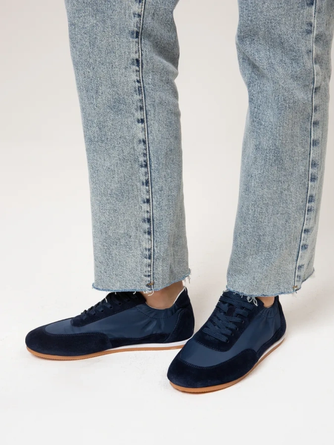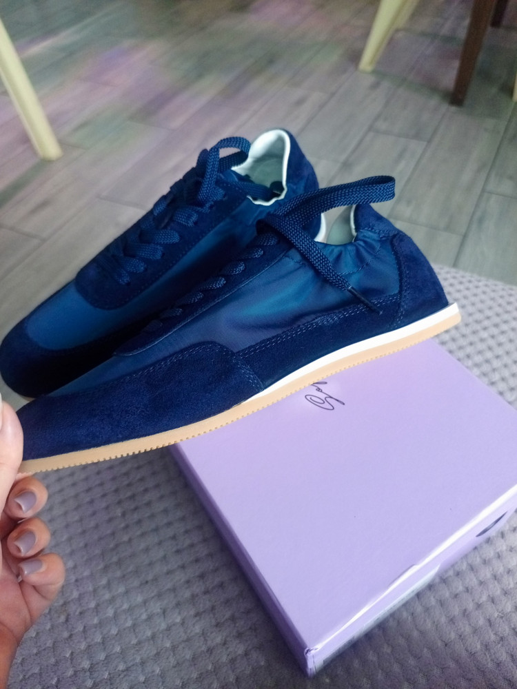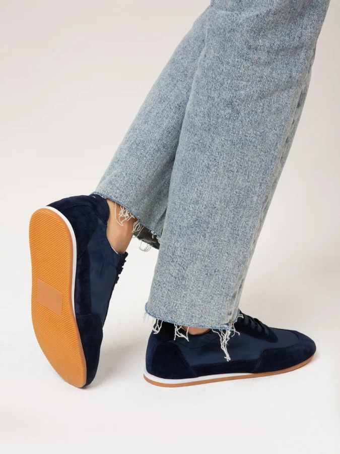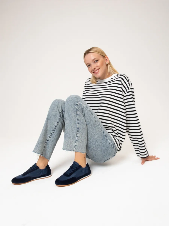 Верх кроссовок выполнен из замши и текстиля, что придаёт им особый шарм и обеспечивает комфорт в носке. Подкладка и стелька из 100% натуральной кожи гарантируют удобство и долговечность. Резиновая подошва обеспечивает отличное сцепление с поверхностью и износостойкость. Шнуровка позволяет регулировать плотность посадки, а минималистичный дизайн без каблука делает эти кроссовки универсальным решением для любого образа в стиле sport. Высота подошвы всего 0,7 см, а высота каблука — 1 см, что обеспечивает удобство и устойчивость при ходьбе.