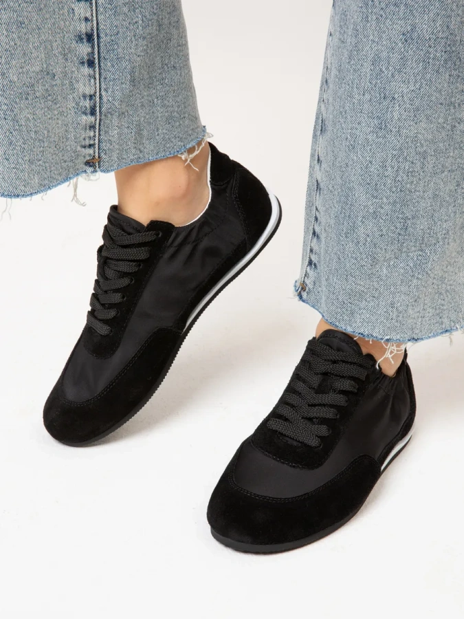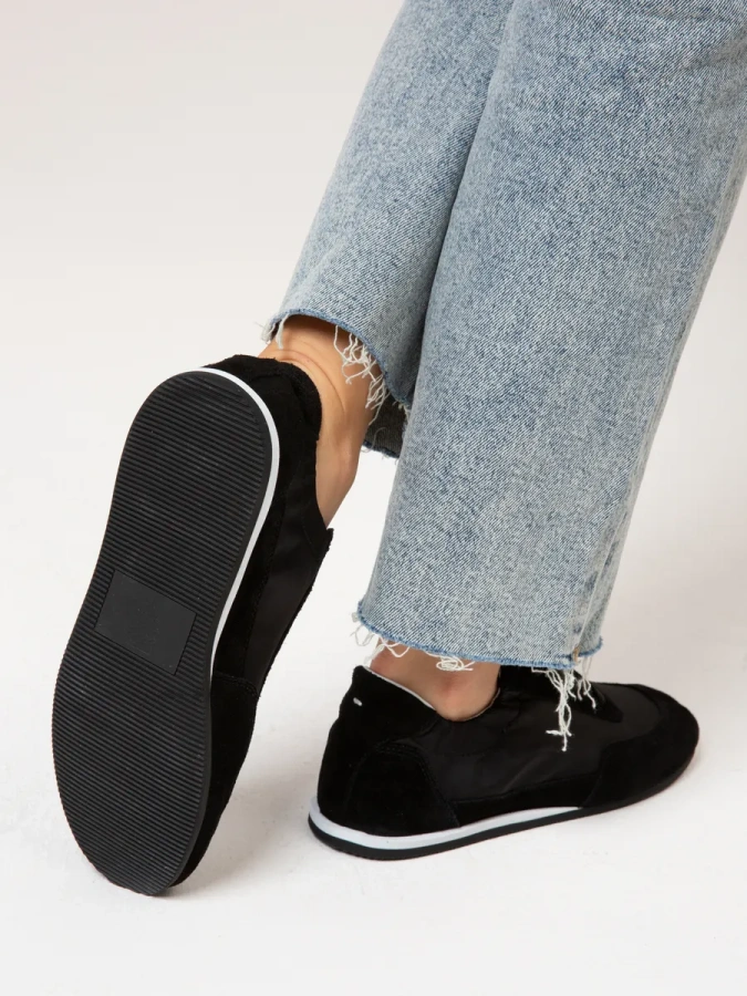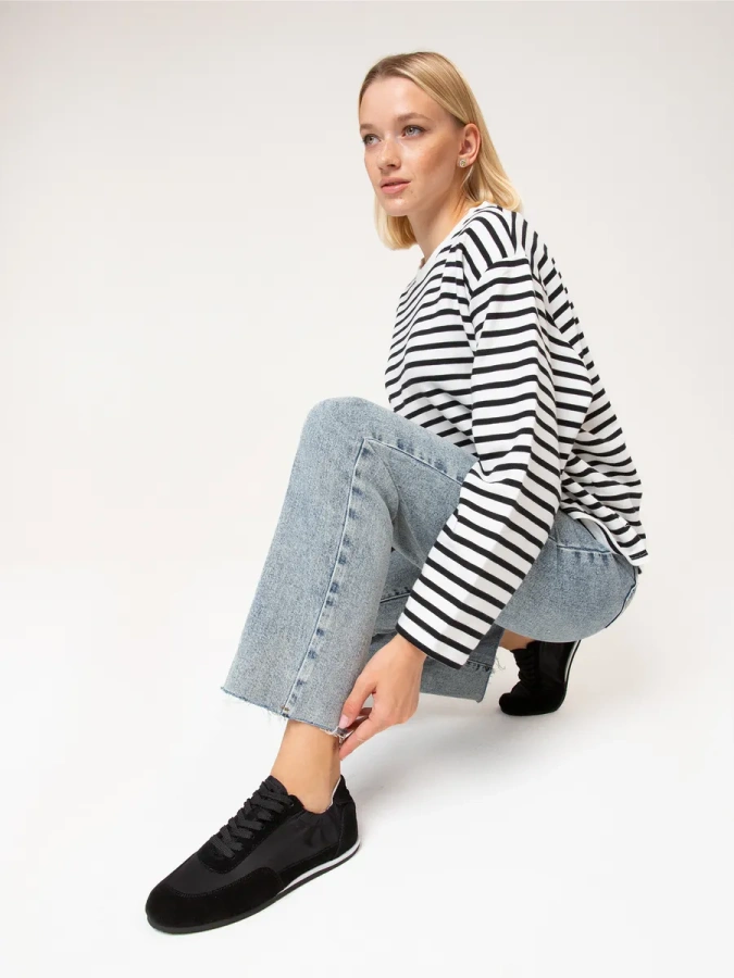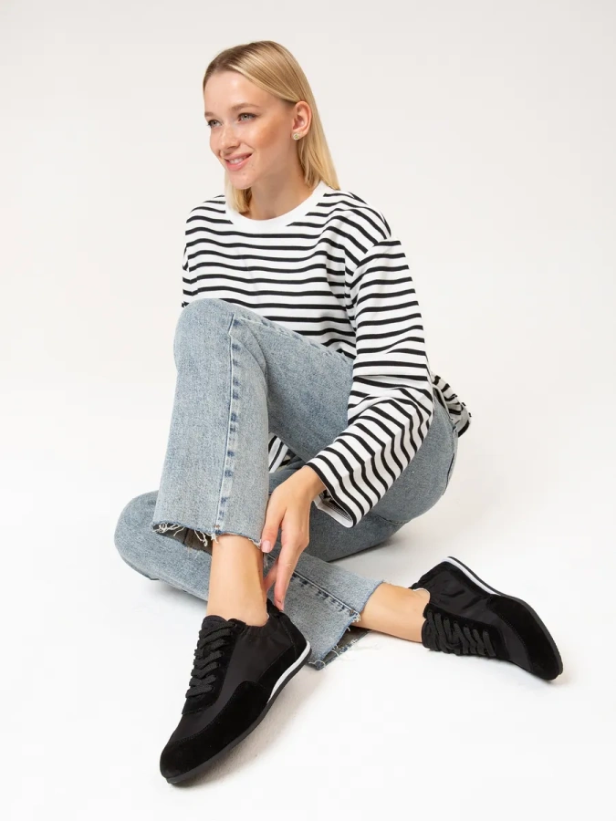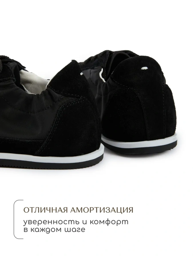 Верх кроссовок выполнен из замши и текстиля, что придаёт им особый шарм и обеспечивает комфорт в носке. Подкладка и стелька из 100% натуральной кожи гарантируют удобство и долговечность. Резиновая подошва обеспечивает отличное сцепление с поверхностью и износостойкость. Шнуровка позволяет регулировать плотность посадки, а минималистичный дизайн без каблука делает эти кроссовки универсальным решением для любого образа в стиле sport. Высота подошвы всего 0,7 см, а высота каблука — 1 см, что обеспечивает удобство и устойчивость при ходьбе.